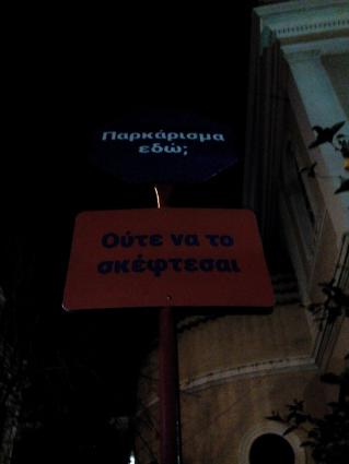 -Ετσι αντιμετωπίζουν καταστηματάρχες κάπου.. στου Ψυρρή στην Αθήνα το παράνομο παρκάρισμα μπροστά απο τα μαγαζιά τους......με πινακίδες...