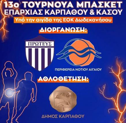 Χθες το βράδυ έγινε η κλήρωση στο 13ο καλοκαιρινό τουρνουά μπάσκετ της επαρχίας Καρπάθου- Κάσου, που διοργανώνει ο Πρωτέας Απερίου και η Περιφέρεια Νοτίου Αιγαίου, υπό ...