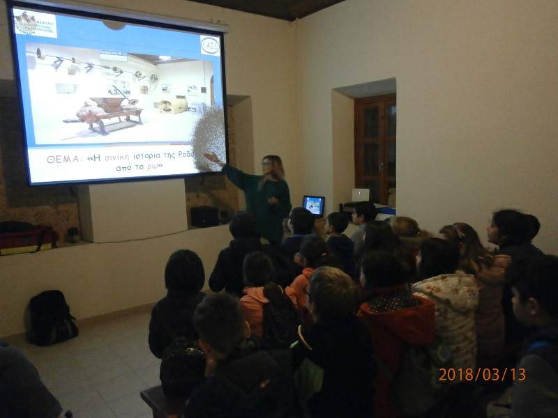 Δελτίο τύπου-«Εάν αποσυνθέσεις την Ελλάδα, στο τέλος θα δεις να σου απομένουν μια ελιά, ένα αμπέλι κι ένα καράβι. Που σημαίνει ότι με άλλα τόσα την ξαναφτιάχνεις». (Οδ. Ελύτης) -Την Τρίτη 13/03/2018 οι μαθητές της Δ’ τάξης του 2ου Πειραματικού Δημοτικού Σχολείου Ρόδου συμμετείχαν την εκπαιδευτική δράση του ΚΠΕ Πεταλούδων (Κέντρο Περιβαλλοντικής Εκπαίδευσης Πεταλούδων Ρόδου): «Η οινική ιστορία της Ρόδου μέσα από το ρω» στο Βιωματικό Κέντρο Αγροτικής Κληρονομιάς Νοτίου Αιγαίου, στον ιστορικό χώρο του πρώτου εργοστασίου οινοποιίας της ΚΑΪΡ στις Φάνες. Μια πραγματικά πολύ ενδιαφέρουσα δράση η οποία περιλάμβανε ξενάγηση στον ανακαινισμένο, μουσειακό χώρο που είναι ειδικά διαμορφωμένος για εκπαιδευτικούς σκοπούς, με τμήματα παλαιού μηχανολογικού εξοπλισμού, δίνοντας στους μαθητές την ευκαιρία να γνωρίσουν παραδοσιακά εργαλεία αμπελουργίας και μεθόδους οινοποίησης, προσέγγιση της τοπικής οινικής ιστορίας διαθεματικά, μέσα από τις τέχνες, τη λαογραφία, τη θρησκεία, τη λογοτεχνία και τη μουσική, βιωματικά παιχνίδια "Αισθήσεων" και δημιουργία κολλάζ. Η εμπειρία, όπως ανέφεραν οι συμμετέχοντες, μαθητές και εκπαιδευτικοί, ήταν καταπληκτική, καθώς είχαν την ευκαιρία να μυηθούν στα μυστικά της αμπελοκαλλιέργειας και της οινοποίησης, να συνειδητοποιήσουν την ανάγκη της προστασίας της, να κατανοήσουν την έννοια της αειφόρου ανάπτυξης και εν τέλει να αντιληφθούν πως παράδοση και πρόοδος δεν είναι έννοιες αντίθετες. Από τον ΕΛΑΙΟΥΡΓΙΚΟ ΚΑΙ ΑΜΠΕΛΟΥΡΓΙΚΟ ΣΥΝΕΤΑΙΡΙΣΜΟ ΔΩΔΕΚΑΝΗΣΟΥ - Η ΕΝΩΣΗ η Κα. Νίκη Παπαγεωργίου στην υποδοχή και ξενάγηση των μαθητών στο χώρο του Βιωματικού Κέντρου Αγροτικής Κληρονομιάς Νοτίου Αιγαίου στις Φάνες. Η δράση απευθύνεται σε όλες τις σχολικές μονάδες της Α/θμιας και Β/θμιας εκπαίδευσης της Ρόδου και στοχεύει στην περιβαλλοντική ευαισθητοποίηση και στον προβληματισμό των μαθητών για την προοπτική της αμπελουργίας στο μέλλον, εστιάζοντας στην τοπική ιστορία της Ρόδου. Η δράση «Η οινική ιστορία της Ρόδου μέσα από το ρω» έχει δίωρη ενδεικτική διάρκεια και υλοποιείται από τα μέλη της Παιδαγωγικής Ομάδας του ΚΠΕ Πεταλούδων.