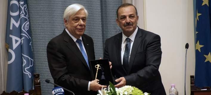 ΕΛΛΗΝΙΚΗ ΔΗΜΟΚΡΑΤΙΑ -ΔΗΜΟΣ ΡΟΔΟΥ -Πλατεία Ελευθερίας, Ρόδος 85100 – τηλ. 22413.61324 φαξ: 22410.46323 -email: mayor@rhodes.gr -Δήμαρχος -Ρόδος 19-04-2018 -«Η ΙΣΤΟΡΙΑ ΤΟΥ ΚΛΕΙΔΙΟΥ…» -Στις 7 Μαρτίου 2017, κατά τις εορταστικές εκδηλώσεις της 70ης επετείου της Ενσωματώσεως της Δωδεκανήσου στην Ελλάδα, με την ευκαιρία της παρουσίας των εκλεκτών προσκεκλημένων του Δήμου Ρόδου, μεταξύ των οποίων συμπεριλαμβανόταν: o Πρόεδρoς της Ελληνικής Δημοκρατίας, οι Μακαριώτατοι Προκαθήμενοι του Αγιωτάτου Ορθοδόξου Πατριαρχείου, Ιεροσολύμων, των Αρμενίων, ο Επικεφαλής της Κουστοδίας του Φραγκισκανικού Τάγματος στους Αγίους Τόπους με τις Σεβαστές Συνοδείες τους, κατά την ιστορική αυτή επέτειο, η οποία είχε συνδυαστεί με την θρησκευτική τελετή της παρουσίασης της ιστορικής αναστήλωσης του Παναγίου Τάφου στην Ιερουσαλήμ από την καθηγήτρια του Εθνικού Μετσόβιου Πολυτεχνείου, κ. Αντωνία Μωροπούλου, ως Δήμαρχος Ρόδου, επέλεξα να τιμήσω την παρουσία τους κατά την ιστορική αυτή επέτειο, με ένα αναμνηστικό, επετειακό δώρο, όπως ο ίδιος είχα βρει από ιστορικές πηγές και το οποίο ήταν «το πιστό αντίγραφο του κλειδιού της πόλης», το οποίο προσέφερε ο τότε δήμαρχος Ρόδου, κ.Γαβριήλ Χαρίτος στον τότε Ανώτατο πολιτειακό ΄Αρχοντα της Ελλάδας. Είναι γνωστό, ότι η Βουλή των Ελλήνων, είχε ανακηρύξει το «2017-ΕΤΟΣ ΔΩΔΕΚΑΝΗΣΟΥ», προς τούτο μεταξύ των δέκα (10) περιορισμένων αυτών επετειακών αναμνηστικών αντιγράφων του κλειδιού, τα οποία είχα επιμεληθεί εξ ιδίων, θα παραδιδόταν για ιστορικούς λόγους στην Βουλή των Ελλήνων και ένα εξ αυτών έχει παραμείνει στον Δήμο Ρόδου, εις ανάμνηση του επετειακού εορτασμού των 70 χρόνων-ΕΛΕΥΘΕΡΑ ΔΩΔΕΚΑΝΗΣΑ. Σε καμία περίπτωση δεν ήταν το «χρυσό κλειδί της πόλης», το οποίο δίδεται σε τιμητικές διακρίσεις προσωπικοτήτων. Ανάλογο επετειακό, αναμνηστικό δώρο με τα επίχρυσα γραμματόσημα με συμβολικές παραστάσεις για την Ενσωμάτωση της Δωδεκανήσου δόθηκε από τον Δήμο Ρόδου και προς τον Αρχηγό της Αξιωματικής Αντιπολίτευσης κ. Κυριάκο Μητσοτάκη, κατά την 7η Μαρτίου 2018. Η παρουσία του Πρωθυπουργού της Ελλάδας στις 17-04-2018 στο 13ο Αναπτυξιακό Συνέδριο, που διεξήχθη στη Ρόδο, στο πλαίσιο της διαμόρφωσης της «Εθνικής Αναπτυξιακής Στρατηγικής 2021» με την συμμετοχή των εκπροσώπων της Τοπικής Αυτοδιοίκησης, είχε αποκλειστικό σκοπό την συγκρότηση του αναπτυξιακού μοντέλου της νησιωτικής περιφέρειας, ώστε να επέλθει η σύνθεση μέσα από τις διαφορετικές θέσεις και αντιθέσεις, αυτό ακριβώς, που αποτελεί και την πεμπτουσία της Δημοκρατίας . Η Δημοκρατία είναι το πολίτευμα του μέτρου και του λόγου, που καταξιώνει τον άνθρωπο και την αξιοπρέπειά του. Η Κοινοβουλευτική Δημοκρατία αποτελεί τον κορυφαίο πολιτικό θεσμό και τα πρόσωπα που αναλαμβάνουν θεσμικούς ρόλους, έχουν τον συμβολικό λόγο και το περιεχόμενο, το οποίο τους προσδίδει το Σύνταγμα της χώρας και οι νόμοι. Ως Δήμαρχος Ρόδου, εκπροσωπώντας, ένα θεσμό της Δημοκρατίας, θεωρώ, ότι ήταν επιβεβλημένο εκ των περιστάσεων, απευθυνόμενος προς τον Πρωθυπουργό της Ελλάδας, να παραδώσω το επετειακό αυτό δώρο. Ένα συμβολικό δώρο, το οποίο, όπως ρητά ανέφερα και προς τον Πρωθυπουργό, αφορούσε την επέτειο της Ενσωμάτωσης των Δωδεκανήσων στην Ελλάδα, την ιστορική αυτή ημέρα της δικαίωσης των αγώνων και των θυσιών του Δωδεκανησιακού Λαού. Σας ευχαριστώ Ο ΔΗΜΑΡΧΟΣ ΡΟΔΟΥ ΦΩΤΗΣ ΧΑΤΖΗΔΙΑΚΟΣ ----------------------------------------------------------------------------------------