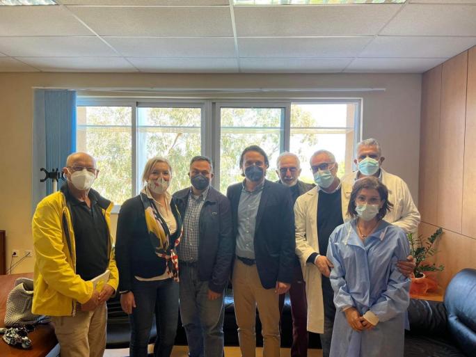 Τα μέλη του κλιμακίου ενημερώθηκαν από τον διοικητή του Νοσηλευτικού Ιδρύματος αναλυτικά για τα προβλήματα του Νοσοκομείου που αφορούν τόσο στον εξοπλισμό (βελτίωση και εκσυγχρονισμός) όσο και στο ανθρώπινο δυναμικό (ιατρικό-νοσηλευτικό και διοικητικό). Κυρίαρχο πρόβλημα είναι αυτό της υποστελέχωσης που μέχρι σήμερα καλύπτεται χάρη στις υπερπροσπάθειες των γιατρών και των νοσηλευτών. Ο κ. Γρ. Ρουμάνης υποστήριξε ότι η μόνη λύση για την κάλυψη των κενών θέσεων από εξειδικευμένο ιατρικό προσωπικό είναι να θεσπιστούν ισχυρά κίνητρα που θα παρακινήσουν τους επιστήμονες να υπηρετήσουν στο Νοσοκομείο του νησιού μας. Άξιο αναφοράς είναι επίσης πως 170 θέσεις νοσηλευτών παραμένουν κενές και για την οριακά εύρυθμη λειτουργία του Νοσοκομείου απαιτείται η άμεση πρόσληψη τουλάχιστον 60.