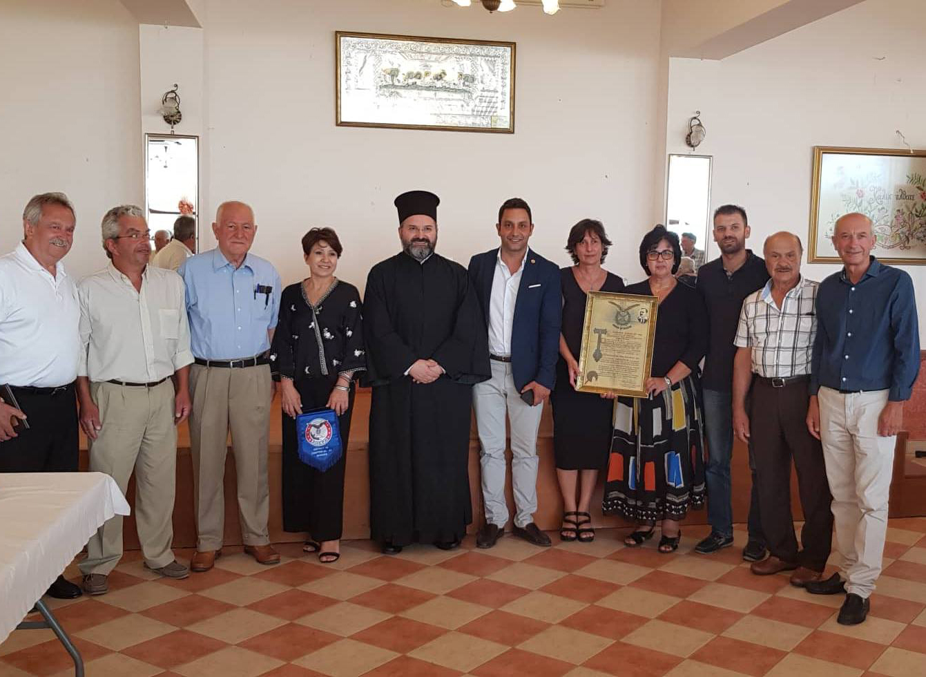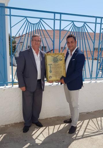 Δ Ε Λ Τ Ι Ο Τ Υ Π Ο Υ -Θέμα: «Iστορικό κειμήλιο της ΑΧΕΠΑ στην Κάρπαθο» -Την Κυριακή 05 Αυγούστου 2018, στο Παγκαρπαθιακό Μνημόσυνο που διοργάνωσε το «Παγκαρπαθιακό Ίδρυμα Αμερικής» σε συνεργασία με τον Σύλλογο «ΟΜΟΝΟΙΑ» Απερίου και φορείς των αποδήμων Απερίου Καρπάθου, την ΑΧΕΠΑ ΕΛΛΑΣ εκπροσώπησαν: ο Πρόεδρος του Τμήματος ΑΧΕΠΑ HJ – 33 Ρόδου και Αντιπρόεδρος Φιλανθρωπίας της Ελληνικής Περιφέρειας (D – 25) κ. Αντώνιος Γιαννικουρής και ο Αντιπρόεδρος Ελληνισμού της Ελληνικής Περιφέρειας κ. Βασ. Γκρέκας. Την Αρχιερατική λειτουργία και το Μνημόσυνο τέλεσε ο Σεβασμιώτατος Μητροπολίτης Καρπάθου και Κάσου κ.κ. Αμβρόσιος, στον Ιερό Μητροπολιτικό Ναό Κοιμήσεως της Θεοτόκου. Στην συνέχεια ακολούθησε η πραγματικά πολύ συγκινητική παρουσίαση του πολιτιστικού προγράμματος αφιερωμένο στους Καρπάθιους λαϊκούς ποιητές και μουσικούς της Αμερικής, με ομιλητές τον κ. Μιχάλη Μικροπαντρεμένο, τον κ. Μανώλη Κασσώτη και την κα Ρηγοπούλα Ταβερνάρη. Στην εκδήλωση παρέστησαν: ο Σεβασμιώτατος Μητροπολίτης Καρπάθου και Κάσου κ.κ. Αμβρόσιος, ο Δήμαρχος Καρπάθου κ. Ηλίας Λάμπρου, ο Έπαρχος Καρπάθου – Κάσου κ. Ιώαννης Μηνατσής, ο Πρόεδρος του Δημοτικού Συμβουλίου κ. Γεώργιος Νισύριος, ο Πρόεδρος της Τοπικής Κοινότητας Απερίου κ. Αλέκος Μικροπαντρεμένος, η Πρόεδρος του Συλλόγου «ΟΜΟΝΟΙΑ» Απερίου κα Σοφία Οικονομίδου, ο Αντιπρόεδρος του «Παγκαρπαθιακού Ιδρύματος Αμερικής» κ. Ανδρέας Διάκος και πλήθος εκλεκτών συμπατριωτών μας από την όμορφη Κάρπαθο. Ο Πρόεδρος του Τμήματος ΑΧΕΠΑ Ρόδου κ. Αντώνιος Γιαννικουρής κατά τον χαιρετισμό του, αφού συνεχάρη τους παρευρισκόμενους που και φέτος τιμούν τη μνήμη των προγόνων τους, τηρώντας τα ήθη και τα έθιμα της Καρπάθου, έκανε αναφορά στην ΑΧΕΠΑ και τους σκοπούς της οργάνωσης λέγοντας χαρακτηριστικά: ..«Οι ΑΧΕΠΑΝΣ είναι ένα μεγάλο κομμάτι της ομογένειας. Μια οργάνωση που ιδρύθηκε στην Αμερική το 1922, από Έλληνες μετανάστες. Η δράση της έχει ως χαρακτηριστικό τη νοσταλγία για την πατρίδα, την ανιδιοτελή προσφορά σε αυτή, τη διατήρηση των παραδόσεων, της θρησκείας, της ελληνικής γλώσσας καθώς και των ηθών και εθίμων του τόπου μας. Τη διαφύλαξη δηλαδή του Ελληνισμού και τη διατήρηση της Εθνικής συνείδησης των αποδήμων Ελλήνων». Στην συνέχεια αναφέρθηκε στον σκοπό της επίσκεψης των εκπροσώπων της ΑΧΕΠΑ ΕΛΛΑΣ στην Κάρπαθο και παρουσίασε το ιστορικό κειμήλιο το οποίο ανήκει στην οικογένεια του Επάρχου Καρπάθου και Κάσου, κ. Ιωάννη Μηνατσή. Το τεκμήριο από το οποίο προκύπτει, η ουσιαστική διασύνδεση της Δωδεκανήσου με την ΑΧΕΠΑ, δηλάδη με τους απόδημους Έλληνες. Ο κ. Γιαννικουρής σε μια συναισθηματικά φορτισμένη στιγμή, παρέδωσε το ιστορικό κειμήλιο στον κ. Έπαρχο λέγοντας: «Το γεγονός αυτό, καταδεικνύει πως η Δωδεκάνησος, η δική μας ακριτική πατρίδα συνδέεται με την Οργάνωσή σχεδόν από την ίδρυση της. Φαίνεται πως οι εκ Καρπάθου Δωδεκανήσιοι συμπατριώτες μας, υπήρξαν από τους θεματοφύλακες του Ελληνισμού, σε εκείνα τα δύσκολα χρόνια. Το ιστορικότερο κειμήλιο στη χώρα, μια τιμητική διάκριση της ΑΧΕΠΑ του 1927, ανήκει στην Κάρπαθο». Μετά το πέρας της ομιλίας, ο κ. Γιαννικουρής αφού ευχαρίστησε και συνεχάρη τους οργανωτές, επέδωσε στον Αντιπρόεδρο του «Παγκαρπαθιακού Ιδρύματος Αμερικής» κ. Ανδρέα Διάκο τιμητική πλακέτα εκ μέρους του Διοικητικού Συμβουλίου και ένα λάβαρο με το έμβλημα του Τμήματος ΑΧΕΠΑ HJ – 33 Ρόδου στην Πρόεδρο του 