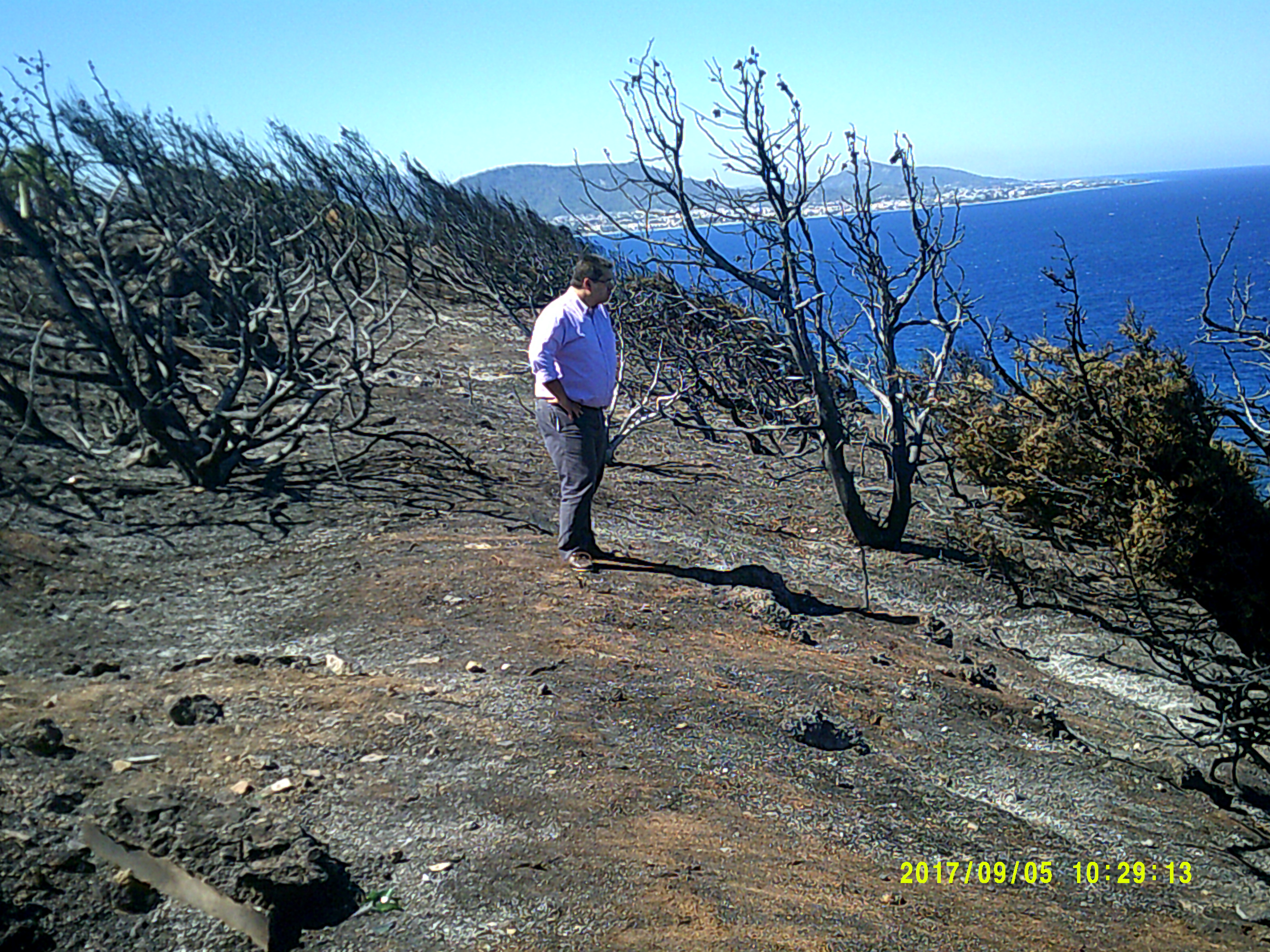 Με αφορμή την παραπάνω αυτοψία, απέστειλε έγγραφο (α.π. Οίκ. 228/4.9.2017) προς τους αρμοδίους για ενέργεια (Π.Ν.Αι., Δήμο Ρόδου, Δασαρχείο, Αρχαιολογία) εκφράζοντάς τους την αγωνία του αλλά κυρίως την αναγκαιότητα για άμεσες παρεμβάσεις στην περιοχή.