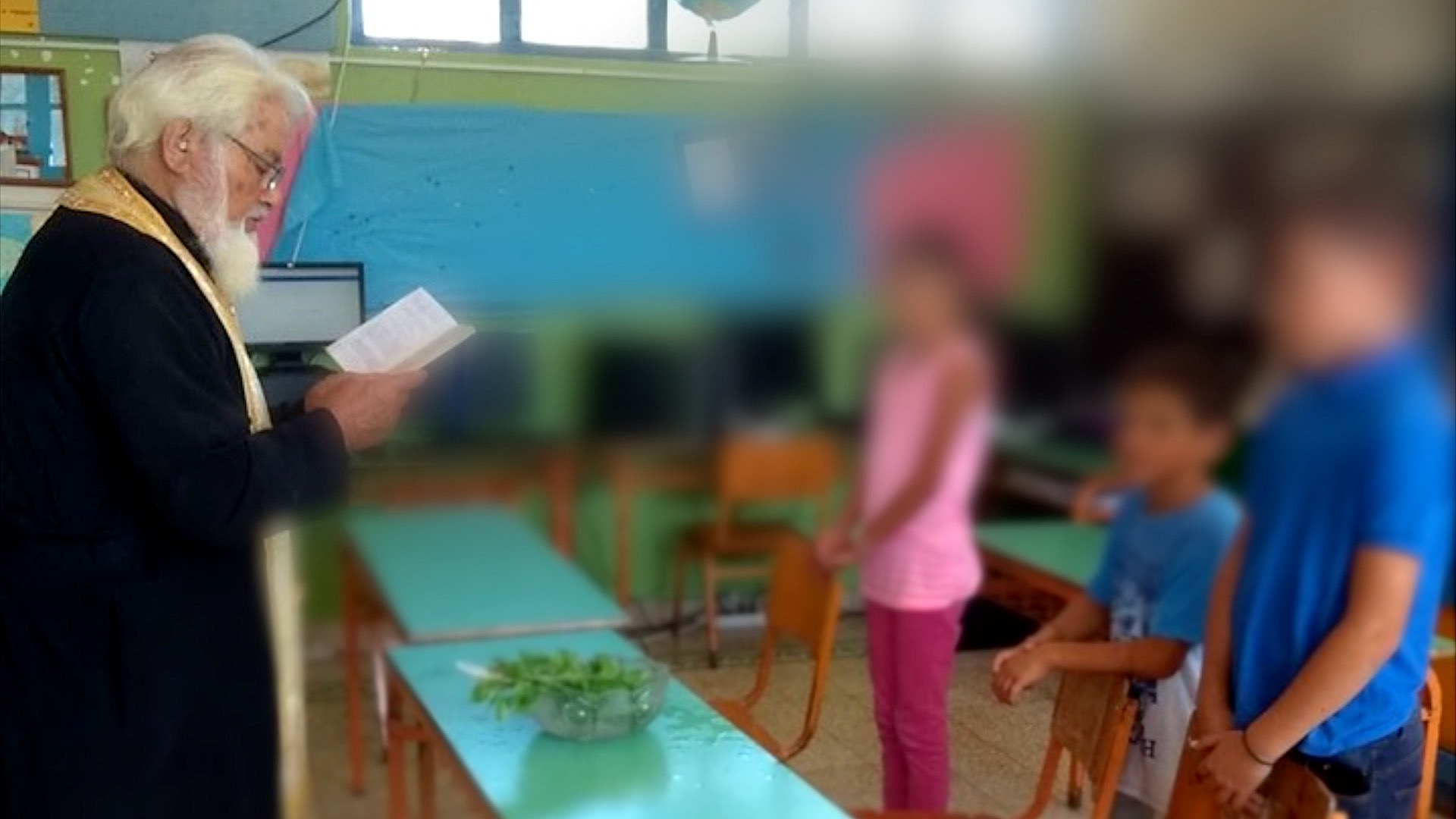 Στην φωτογραφία, που ανάρτησε στο facebook η Ρούλα Παπαβασίλη, γινόμαστε θεατές στο φετινό άνοιγμα του δημοτικού σχολείου Διαφανίου και βλέπουμε τους τρεις μαθητές και τον παπα-Μηνά στην τελετή του αγιασμού.