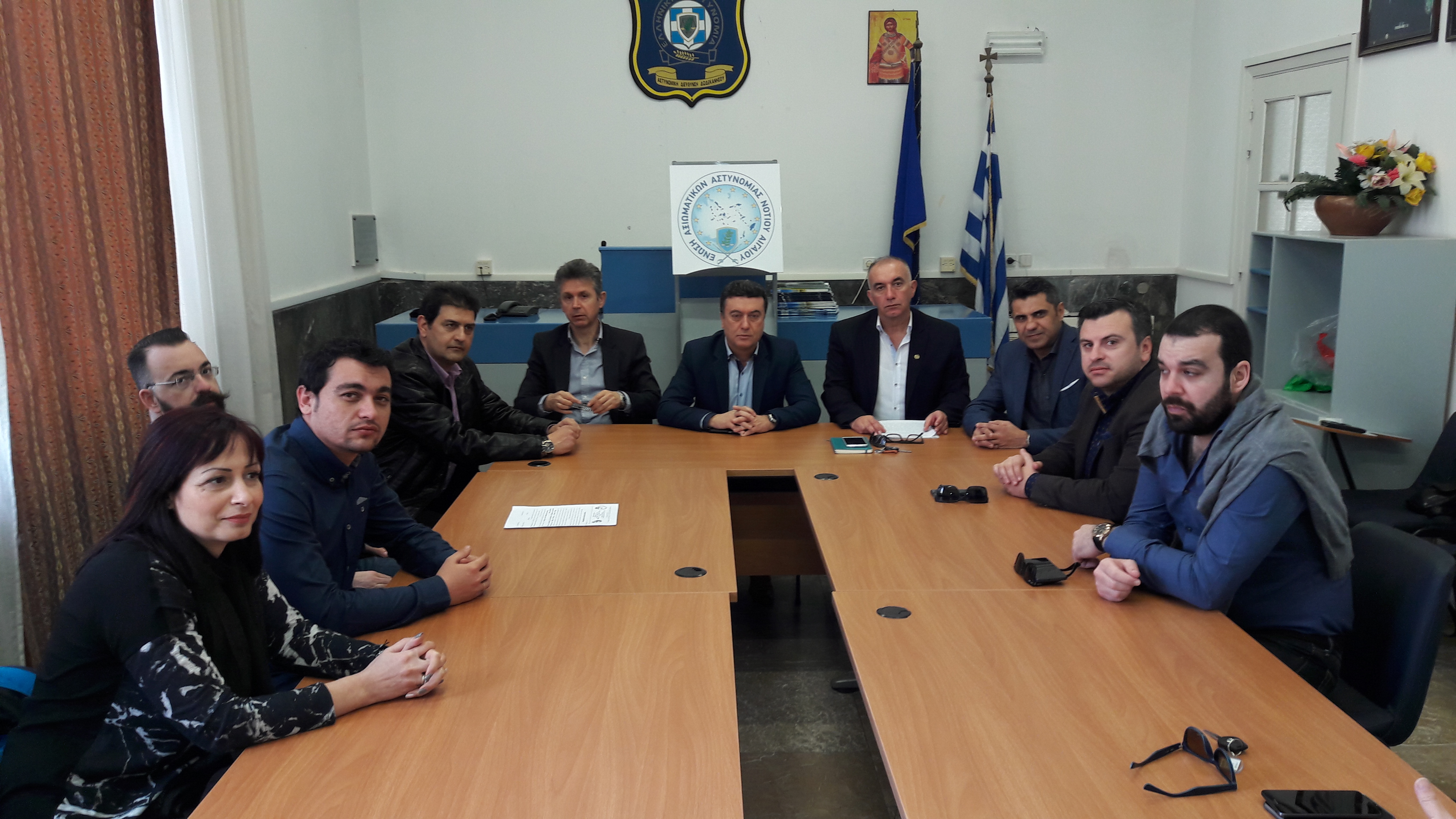 Σε μια πανηγυρική συνεδρίαση των μελών των Δ.Σ. των Ενώσεων Αξιωματικών Αττικής και Νοτίου Αιγαίου, με την παρουσία του Προέδρου και του Γενικού Γραμματέα της Ομοσπονδίας μας, που έλαβε χώρα το Σάββατο 11 Φεβρουαρίου 2017 και ώρα 11.00’ στην αίθουσα συνεδριάσεων της Α’ Αστυνομικής Δ/νσης Δωδεκανήσου, στην Ρόδο, αποφασίσθηκε ομοφώνως η αδελφοποίηση των Ενώσεων μας, στο πλαίσιο των δεσμών συναδελφικής και συνδικαλιστικής αλληλεγγύης, που οφείλει να διέπει τις σχέσεις των πρωτοβαθμίων Ενώσεων και της ενδυνάμωσης και σύσφιξης των σχέσεων αυτών, έχοντας ως στόχο την στενή και δημιουργική συνεργασία στα πλαίσια των συνδικαλιστικών μας δράσεων και την αντιμετώπιση κοινών προβλημάτων που ανέκυψαν κυρίως με την έξαρση του προσφυγικού-μεταναστευτικού ζητήματος στα νησιά του ανατολικού Αιγαίου, όπου πάρα πολλά μέλη της Ένωσης Αξιωματικών Αττικής υπηρετούν με αποσπάσεις, υπό δύσκολες συνθήκες. Η συνεργασία αυτή που γίνεται υπό την αιγίδα της Ομοσπονδίας μας, είμαστε βέβαιοι ότι θα συμβάλει στην επίλυση των προβλημάτων που ανακύπτουν στους συναδέλφους που υπηρετούν στα νησιά, αλλά και γενικότερα στην συμπαραγωγή έργου προς όφελος των συναδέλφων και της κοινωνίας.