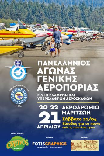 Αεροπορικός Αγώνας στο Αεροδρόμιο Μαριτσών στις 20-21-22 Απριλίου.-Η Ελληνική Αεραθλητική Ομοσπονδία σε συνεργασία με την Αερολέσχη Ρόδου, διοργανώνουν για πρώτη φορά στην Ρόδο αγώνα Rally Flying Γενικής Αεροπορίας . Το ιστορικό αεροδρόμιο Μαριτσών θα φιλοξενήσει για τρεις ημέρες μια σπουδαία συνάντηση μονοκινητήριων αεροσκαφών από όλη την Ελλάδα ενώ έχουν προσκληθεί και αθλητές της Κυπριακής Αεραθλητικής Ομοσπονδίας να συμμετάσχουν. Η συνάντηση θα ξεκινήσει από το πρωί της Παρασκευής 20/04 με τις αφίξεις των αεροσκαφών και την ενημέρωση των πληρωμάτων από την επιτροπή αγώνα. Το Σάββατο 21/04 θα πραγματοποιηθεί το καθαρά αγωνιστικό κομμάτι όπου κάθε αεροσκάφος , με πλήρωμα δύο πιλότων, θα πετάξει πάνω από καθορισμένη περιοχή του νησιού, έχοντας σαν στόχο την ακρίβεια στην πλοήγηση και την ναυτιλία κατά την πτήση ενώ απαιτείται και μία προσγείωση ακριβείας κατά την επιστροφή . Το βράδυ της ίδιας ημέρας θα ανακοινωθούν τα αποτελέσματα και θα γίνουν οι απονομές στα πληρώματα που θα επιτύχουνν την καλύτερη βαθμολογία. Η Κυριακή 22/04 είναι η ημέρα αναχώρησης των αεροσκαφών . Η είσοδος για το κοινό θα είναι ελεύθερη στο αεροδρόμιο Μαριτσών το Σάββατο 21/04 από τις 11:00 έως τις 13:00. Οι επισκέπτες θα εισέρχονται οργανωμένα και οδικώς με την συνοδεία μελών της Αερολέσχης . Πρόκειται για μια μοναδική ευκαιρία για τους φίλους της Αεροπορίας και κυρίως τα νέα παιδιά, να δουν συγκεντρωμένα αεροσκάφη από όλη την Ελλάδα και να γνωρίσουν τους ανθρώπους που τα πετάνε. Η όλη εκδήλωση είναι ενταγμένη στα πλαίσια μια συνεχής προσπάθειας εδώ και 44 χρόνια, της Αερολέσχης Ρόδου, για προώθηση της Αεροπορικής ιδέας και του Αεραθλητισμού στον τόπο μας ενώ παράλληλα σαν σωματείο θέλει να συμβάλει στην ανάπτυξη του αθλητικού τουρισμού και στην προσέλευση αεροπόρων -επισκεπτών από τον χώρο της Γενικής Αεροπορίας στην Ρόδο και στα Δωδεκάνησα.