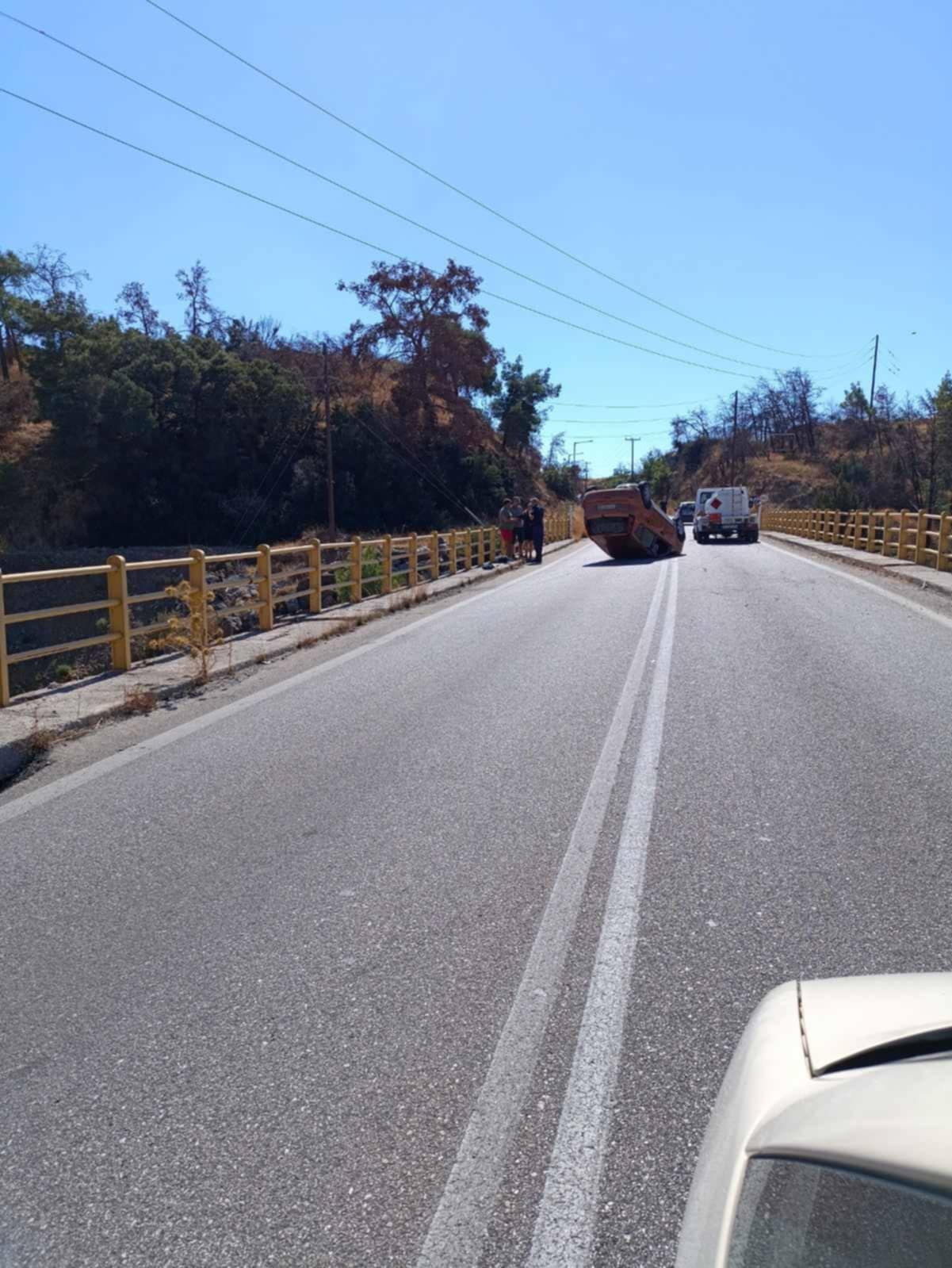 Το φετινό καλοκαίρι ήταν ανεπανάληπτα όλα αυτά που καταγράφηκαν στους δρόμους της Ρόδου....Μποτιλιαρίσματα, κομφούζιο, τρακαρίσματα, δυστυχήματα και πολλά άλλα. Σήμερα το είδαμε και αυτό, χωρίς ευτυχώς θύματα. Κάτω από άγνωστες συνθήκες Ι.Χ στο δρόμο προς το Κιοτάρι γύρισε ανάποδα και η κυκλοφορία έγινε δύσκολη. Μετά απο ώρα μετακινήθηκε στην άκρη και οι οδηγοί μπόρεσαν και έφυγαν για τον προορισμό τους.