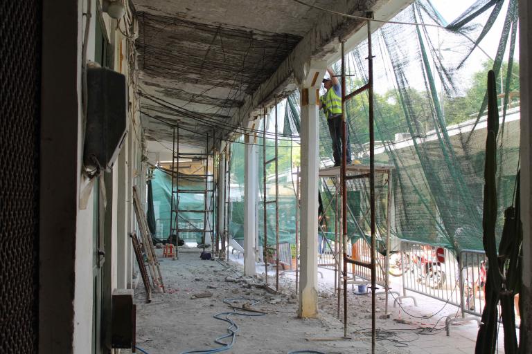 Δελτίο Τύπου-Θέμα: Αναβαθμίζεται η Νέα Αγορά με την εκτέλεση νέων έργων του Δήμου Ρόδου -Πλήρες σχέδιο βελτίωσης της εικόνας της Νέας Αγοράς της Ρόδου στο Μανδράκι και αναβάθμισης της λειτουργίας της, υλοποιεί ο Δήμος Ρόδου. Σειρά έργων που εκτελεί ο Δήμος τον τελευταίο καιρό αποσκοπούν στην αλλαγή της σημερινής κατάστασης του κεντρικότερου σημείου της πόλης της Ρόδου και του πλέον εμβληματικού εμπορικού κέντρου του νησιού μας. Για την προστασία της ομαλής λειτουργίας του, οι εργασίες εκτελούνται σταδιακά, με επιμέρους, μικρής κλίμακας, εργολαβίες. Πρόσφατα ολοκληρώθηκε το έργο «Συντήρηση Νέας Αγοράς» που αφορούσε κυρίως το τμήμα της κεντρικής εισόδου. Συγκεκριμένα έγιναν καθαιρέσεις και ανακατασκευές σε κλίμακες, μωσαϊκά, σαθρά επιχρίσματα στην κεντρική είσοδο και τον κεντρικό τρούλο και εξωτερικά αυτού. Ακόμη στα γραφεία του ορόφου έγιναν επισκευές σαθρών επιχρισμάτων καθώς και συντήρηση και χρωματισμός των ξύλινων κουφωμάτων. Σε εξέλιξη αυτή τη στιγμή βρίσκεται το έργο «Αποκατάσταση Περιστυλίων Νέας Αγοράς- Α’ φάση», που αφορά στην επισκευή του περιστυλίου στο εσωτερικό βορειοανατολικό τμήμα του αίθριου της Νέας Αγοράς. Περιλαμβάνονται η επισκευή φθορών του φέροντα οργανισμού του κτιρίου, η επισκευή οξειδωμένου οπλισμού και αποκατάσταση του σκυροδέματος καθώς και ενίσχυση με εκτοξευόμενο σκυρόδεμα των πλακών της οροφής και των περιμετρικών δοκών. Μέχρι σήμερα έχει σχεδόν ολοκληρωθεί η καθαίρεση σαθρών σοβάδων καθώς και όλων των σαθρών σκυροδεμάτων, γύρω από τους οξειδωμένους οπλισμούς στις πλάκες και τα υποστυλώματα. Επίσης έγινε πλήρη καθαίρεση τμήματος της πλάκας το οποίο παρουσίαζε πλήρως οξειδωμένους οπλισμούς καθώς και πλήρως αποδιοργανωμένο σκυρόδεμα και το οποίο τμήμα θα ανακατασκευασθεί. Οι αποκαλυμμένοι οπλισμοί προστατεύονται με απαλειφόμενο κονίαμα αντιδιαβρωτικής προστασίας και έχει γίνει προετοιμασία για την υποδοχή του εκτοξευόμενου σκυροδέματος. Τις επόμενες ημέρες ολοκληρώνεται η τοποθέτηση νέου οπλισμού και οι εργασίες εκτοξευόμενου σκυροδέματος. Τέλος, αφού γίνουν επιχρίσματα όπου απαιτείται, προβλέπονται να χρωματισθούν οι επιφάνειες με ακρυλικά χρώματα. Οι εργασίες πρόκειται να ολοκληρωθούν έως τον Οκτώβριο του 2018. Την τρέχουσα φάση παρεμβάσεων ολοκληρώνει το έργο «Μονώσεις Δημοτικών Κτιρίων» που αποτελεί και το σημαντικότερο εκ των τριών, προϋπολογισμού 350.000 ευρώ. Η σύμβαση με τον ανάδοχο υπογράφτηκε την Πέμπτη 29 Ιουνίου και αναμένεται η εγκατάσταση του τις επόμενες ημέρες. Στο έργο προβλέπονται εκτεταμένες καθαιρέσεις εξωτερικών διαβρωμένων επιχρισμάτων, ενανθρακωμένου σκυροδέματος και αποκατάσταση τους, με τον επιμελή καθαρισμό της σκουριάς περιμετρικά του οπλισμού, την επάλειψη με αντιοξειδωτική στρώση στον διαβρωμένο οπλισμό και τη χρήση επιχρισμάτων με ινοπλισμένο επίχρισμα για να προφυλαχτεί από τις ρηγματώσεις. Κατόπιν προβλέπονται μονώσεις και η τελική σφράγιση θα γίνει με βαφή στα χρώματα που ήδη υπάρχουν στην Νέα Αγορά. Τέλος, στο εσωτερικό περιστύλιο στέγαστρο θα κατασκευαστούν ξύλινα πάνελ που θα αποτελούνται από οριζόντιες σανίδες, προκειμένου να καλυφθούν τόσο οι εξωτερικές μονάδες των κλιματιστικών σωμάτων που βρίσκονται εκεί, όσο και οι εξωτερικές μονάδες κλιματιστικών που βρίσκονται στο εξωτερικό περιστύλιο στέγαστρο, ενώ θα ζητηθεί από τους εν