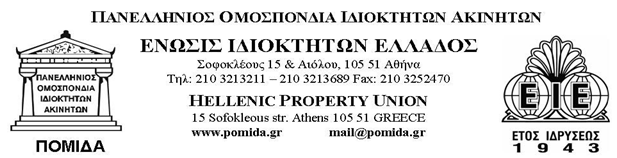 Έχοντας στόχο να αγωνιστεί για τα συμφέροντα χιλιάδων Δωδεκανησίων με μικρή και μεσαία ακίνητη ιδιοκτησία, συγκροτήθηκε το 5μελές Προεδρείο του Παραρτήματος της Ένωσης Ιδιοκτητών Ελλάδος, κεντρικού Σωματείου της ΠΟΜΙΔΑ, στο Νομό Δωδεκανήσου, που απαρτίζεται από τους κκ Δημήτρη Αιβαλή (Μηχανικό ΕΜΠ) και ιδρυτικό στέλεχος της ΠΟΜΙΔΑ ως Πρόεδρο, Σταμάτη Παπασταματίου (Αρχιτέκτονα Μηχανικό) ως Γενικό Γραμματέα, Σάββα Πεταλά (Περιβαλλοντολόγο) ως Υπεύθυνο Τύπου & Επικοινωνίας και μέλη τους κκ Νίκο Αρβανιτίδη (Επιχειρηματία) και Βασίλη Καρνάβα (Ιδιωτικό Υπάλληλο). Πρώτη προτεραιότητα του παραρτήματος της Ένωσης Ιδιοκτητών Ελλάδος στη Δωδεκάνησο, είναι οι επαφές με τους εκπροσώπους των Δήμων της περιοχής μας με στόχο, να εκδοθούν αποφάσεις των Δημοτικών Συμβουλίων που θα υπερβούν την αυθαίρετη ερμηνεία του νόμου Ν3345/2005 (άρθρο 5, παρ 1). 'Όπως είναι γνωστό, λόγω αυθαίρετης ερμηνείας του Νόμου που οφείλεται σε έκδοση σχετικής εγκυκλίου, επιβάλλονται στους ιδιοκτήτες εξοντωτικά πρόστιμα που φτάνουν στο διπλάσιο των τελών καθαριότητας-φωτισμού, αναδρομικά έως και εικοσαετία !!! Πρόκειται για τις περιπτώσεις διακοπής ηλεκτροδότησης ακινήτων οι ιδιοκτήτες των οποίων δεν έχουν καταθέσει τις σχετικές βεβαιώσεις του Διαχειριστή Ελληνικού Δικτύου Διανομής Ηλεκτρικής Ενέργειας (ΔΕΔΔΗΕ) στους Δήμους, εντός τριμήνου από την διακοπή. Όλα αυτά όταν κανένας ιδιοκτήτης δεν γνωρίζει ότι έχει τέτοια υποχρέωση και όταν οι Δήμοι μπορούν να ενημερώνονται αρμοδίως από τη ΔΕΔΔΗΕ για τα ακίνητα που διέκοψαν ή που συνδέθηκαν με το δίκτυο ηλεκτροδότησης. Γιατί λοιπόν να τιμωρείται ο πολίτης για μία δήθεν παράλειψη του όταν είναι εύκολο οι δημόσιες αρχές να ενημερώνουν η μία την άλλη; Γίνεται λοιπόν αντιληπτό ότι πρόκειται για μία ακόμα αυθαίρετη και αστήρικτη πρακτική έμμεσης δήμευσης των περιουσιών, σε μία περίοδο που ούτος ή άλλως η Ελληνική ιδιοκτησία βάλλεται ως φορολογικός "σάκκος του μποξ".