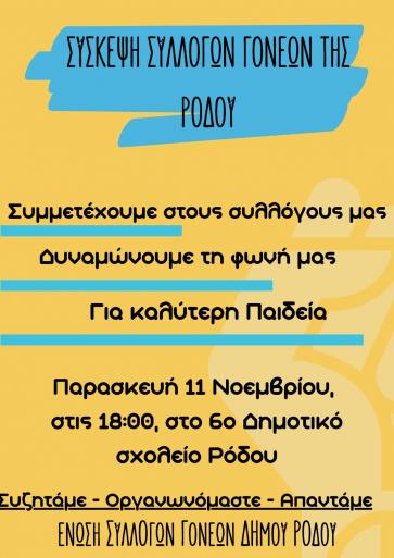 -Η Ένωση Συλλόγων Γονέων Ρόδου καλεί τους γονείς σε ανοιχτή σύσκεψη
