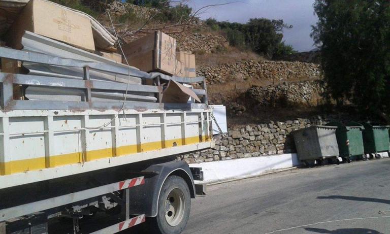 « Παρακαλούμε τους δημότες μας να σεβαστούν την έκκλησή μας , να μην εγκαταλείπουν βαρέα αντικείμενα εδώ και εκεί, παρά μόνο εντός των κάδων. Μεταλλικοί κάδοι βαρέων αντικειμένων για αυτό τον σκοπό έχουν τοποθετηθεί σε αρκετά σημεία του νησιού. Αν κάποιος αδυνατεί να τα μεταφέρει και μέχρι εκεί, παρακαλούμε να επικοινωνεί μαζί μας στο 22450-23822.