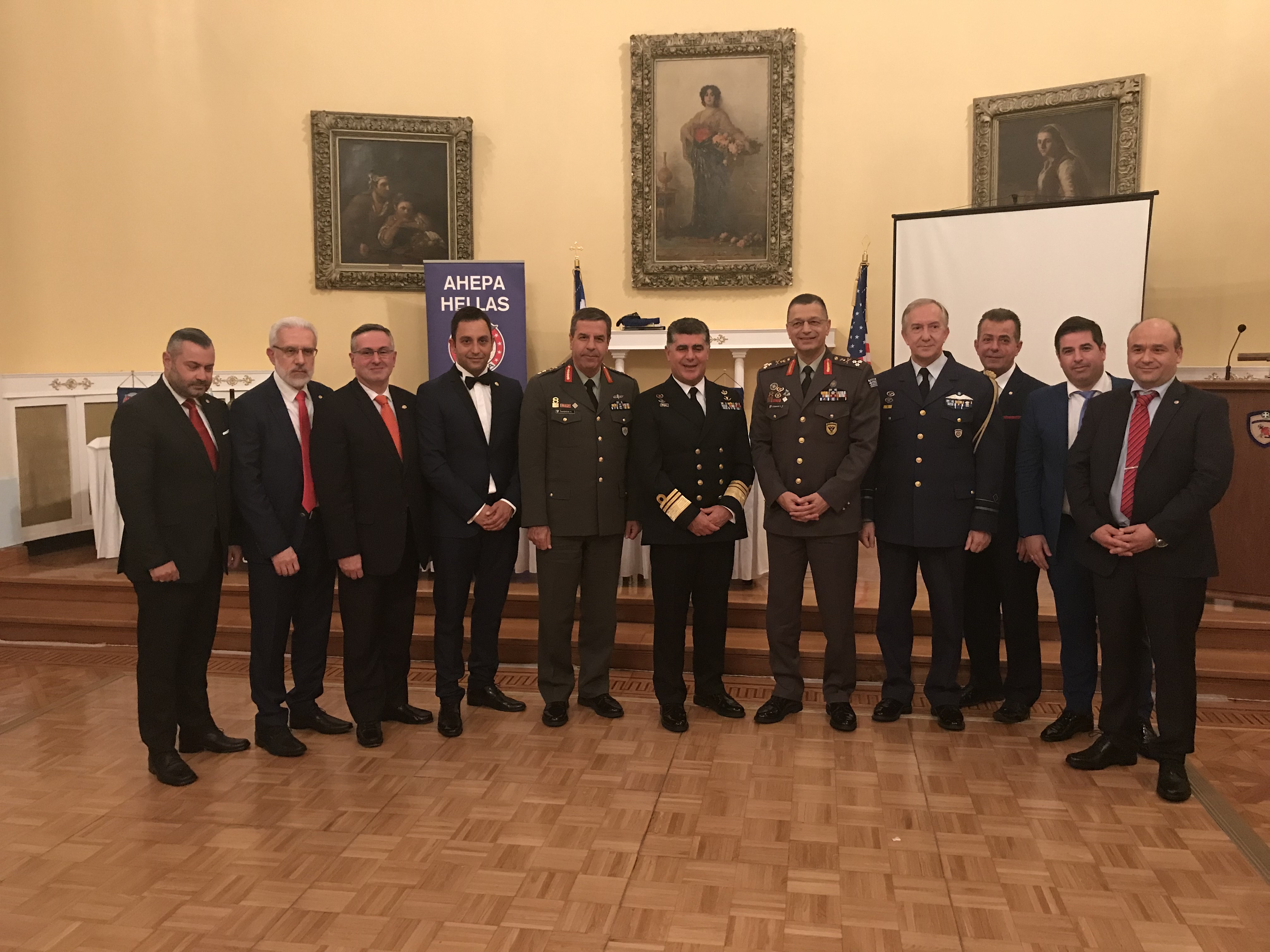 ΔΕΛΤΙΟ ΤΥΠΟΥ-Ρόδος 27/11/2017 -ΘΕΜΑ: Αντιπροσωπεία του Τμήματος Ρόδου της ΑΧΕΠΑ ΕΛΛΑΣ στην εκδήλωση “Thanks Giving Gala Dinner”, στη Λέσχη Αξιωματικών Ενόπλων Δυνάμεων. Στην εκδήλωση “Thanks Giving Gala Dinner”, που διοργάνωσε το Τμήμα HJ-17 Βάρης-Βούλας-Βουλιαγμένης στη Λέσχη Αξιωματικών Ενόπλων Δυνάμεων στις 26 Νοεμβρίου 2017 στην Αθήνα, παρέστησαν τα μέλη του Διοικητικού Συμβουλίου του Τμήματος HJ-33 Ρόδου της AHEPA HELLAS. Το Τμήμα HJ-33 Ρόδου εκπροσώπησαν ο Πρόεδρος κ. Αντώνιος Γιαννικουρής, ο Αντιπρόεδρος κ. Κώστας Νιωτάκης, και μέλη του Διοικητικού Συμβουλίου κ. Κώστας Ζώης, κ. Σταμάτης Παπαποστόλου και κ. Στέφανος Γραμμένος. Κατά τη διάρκεια της εκδήλωσης τα μέλη του Διοικητικού Συμβουλίου του Τμήματος HJ-33 Ρόδου είχαν την ευκαιρία να συζητήσουν με τον Αρχηγό του Γενικού Επιτελείου Στρατού, Αντιστράτηγο κ. Αλκιβιάδη Στεφανή και τον Αρχηγό του Γενικού Επιτελείου Ναυτικού, Αντιναύαρχο κ. Νικόλαο Τσούνη ΠΝ για τα μελλοντικά σχέδια του Τμήματος Ρόδου σε συνεργασία με τις Ένοπλες Δυνάμεις. Στην Συνέχεια ο Πρόεδρος κ. Αντώνιος Γιαννικουρής κατά το χαιρετισμό του συνεχάρη τον Πρόεδρο του Τμήματος HJ-17 Βάρης-Βούλας-Βουλιαγμένης, κ. Παναγιώτη Ριζόπουλο για την υποδειγματική εκδήλωση αλλά και για τη συνολική δράση του Τμήματος HJ-17. Τέλος αφού ευχαρίστησε τους διοργανωτές, παρέδωσε στον Πρόεδρο κ. Ριζόπουλο εκ μέρους όλων των μελών του Τμήματος Ρόδου, την εικόνα του Αγίου Φανουρίου, με την ευχή ο Άγιος Φανούριος να του φανερώνει τα μονοπάτια της αριστείας και της επιτυχίας.