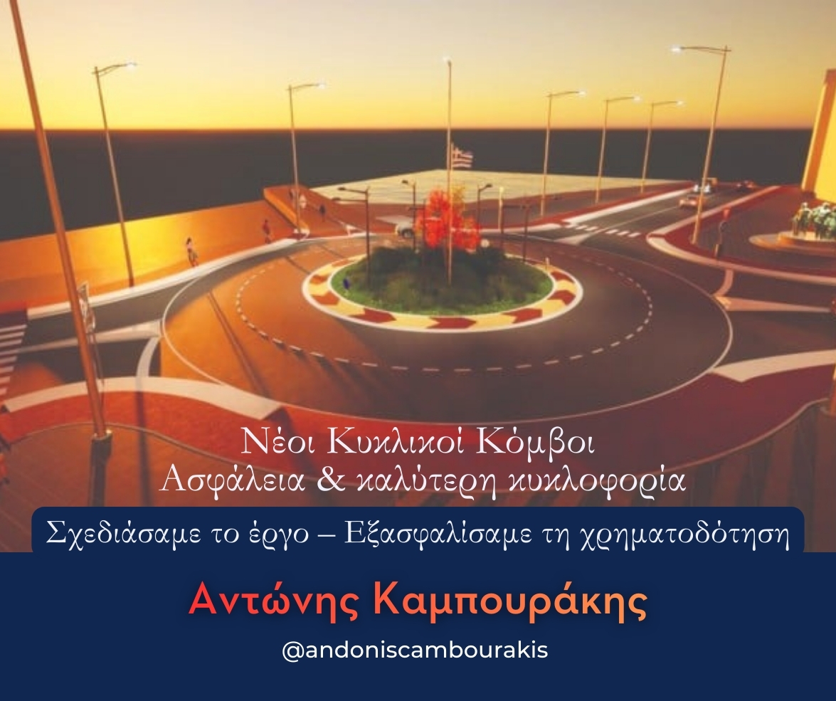 Αντώνης Β. Καμπουράκης: « Η κατασκευή των κυκλικών κόμβων, που σχεδιάσαμε και διασφαλίσαμε την χρηματοδότησή τους, είναι από σημαντικότερα έργα οδικής ασφάλειας»