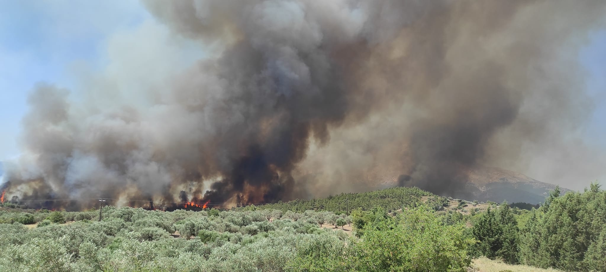 Σκοτείνιασε τελείως η περιοχή του Εμπωνα απο τη φωτιά που αντί να ελεγχθεί έχει φουντώσει, βοηθάει και η φορά του ανέμου και όπως φαίνεται μπορεί να κινδυνέψει ακόμη και ο Προφήτης Ηλίας. Επιχειρούν 6 εναέρια μέσα, εδώ και ώρα πήγαν για ανεφοδιασμό ενώ οι επίγειες δυνάμεις υπερβάλλουν εαυτόν. Όπως μεταδίδει ο Αριστείδης Μιαούλης, απο το μέτωπο της φωτιάς ο δρόμος απο Απόλλωνα προς Εμπωνα έκλεισε. Nα σημειωθεί οτι πριν απο λιγο η φωτιά αρχισε να πλησιάζει το ξενοδοχείο του Προφήτη Ηλία....