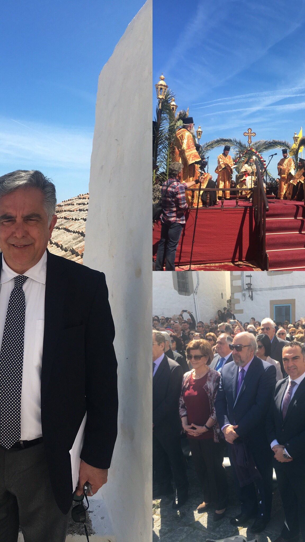 Ρόδος, 06 Απρίλιου 2018-Ο π. Βουλευτής Δωδεκανήσου Βασίλης Α. Υψηλάντης σε Λέρο, Λειψούς, Πάτμο και Κάλυμνο: «...Η πορεία από τα Πάθη στην Ανάσταση δείχνει και το δρόμο της ελπίδας. ..» -Ο π. Βουλευτής Δωδεκανήσου Βασίλης Α. Υψηλάντης ολοκλήρωσε την επίσκεψή του στη Λέρο, Λειψούς, Πάτμο και Κάλυμνο. Κατά την παραμονή του στα νησιά είχε συναντήσεις με δημάρχους και πολίτες και αντάλλαξε απόψεις για τα θέματα που τους απασχολούν. Στην Πάτμο, το Ιερό νησί της Αποκάλυψης, παρακολούθησε την Τελετή του Νιπτήρα απ’ όπου ευχήθηκε στους απανταχού Δωδεκανήσιους με το ακόλουθο μήνυμα: « Η πορεία από τα Πάθη στην Ανάσταση δείχνει και το δρόμο της ελπίδας. Εύχομαι το φως της Ανάστασης να λάμπει στις καρδιές όλων μας. Καλή Ανάσταση και Καλό Πάσχα.».