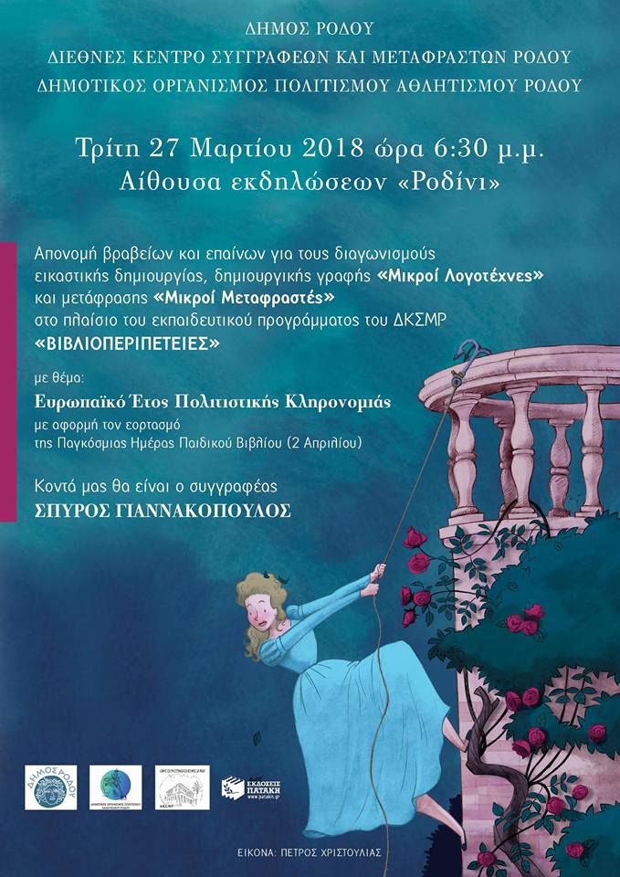 Σας προσκαλούμε μαζί με τους μαθητές και τις μαθήτριες σας στην πανηγυρική εκδήλωση απονομής βραβείων και επαίνων από τους διαγωνισμούς που προκηρύχθηκαν στο πλαίσιο του εκπαιδευτικού προγράμματος ΒΙΒΛΙΟΠΕΡΙΠΕΤΕΙΕΣ. -Η εκδήλωση θα πραγματοποιηθεί την Τρίτη 27 Μαρτίου 2018 και ώρα 6.30 μ.μ. στην αίθουσα "Ροδίνι". Καλεσμένος συγγραφέας είναι ο Σπύρος Γιαννακόπουλος. Σας περιμένουμε!