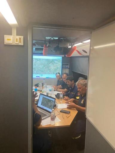 · Από το βράδυ της ίδια ημέρας, συμμετείχε σε όλες τις συσκέψεις του συντονιστικού οργάνου και πραγματοποίησε εναέριες επιθεωρήσεις των μετώπων της πυρκαγιάς με το ελικόπτερο του Λιμενικού Σώματος-Ελληνικής Ακτοφυλακής