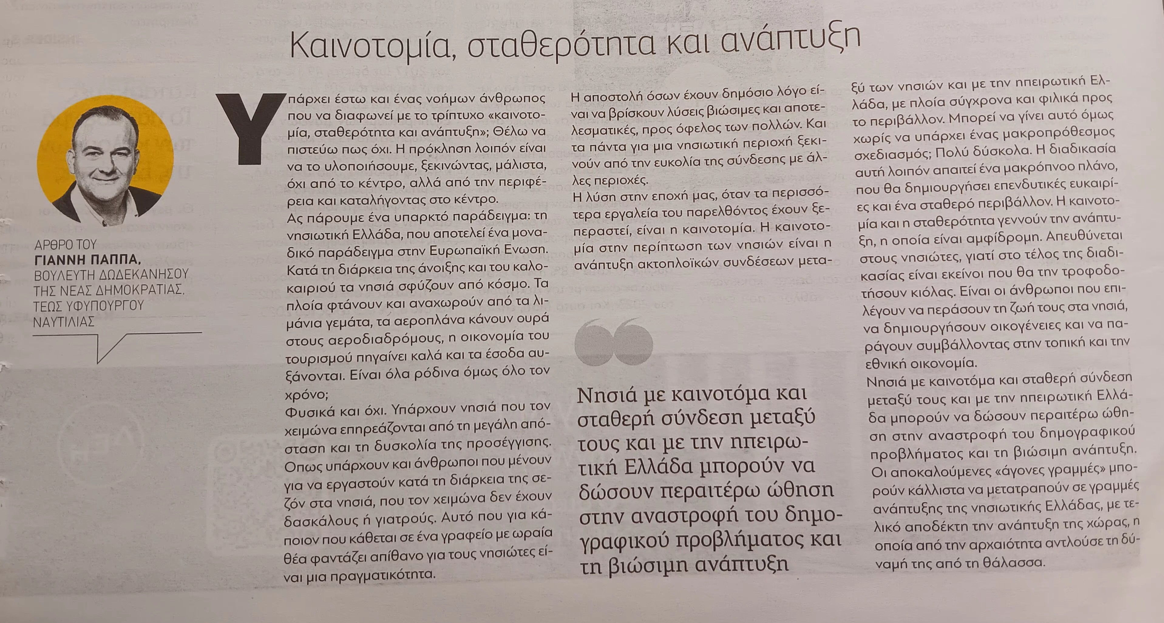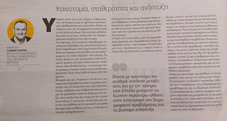 Γιάννης Παππάς: «Καινοτομία, σταθερότητα και ανάπτυξη» – Άρθρο στην εφημερίδα Παραπολιτικά