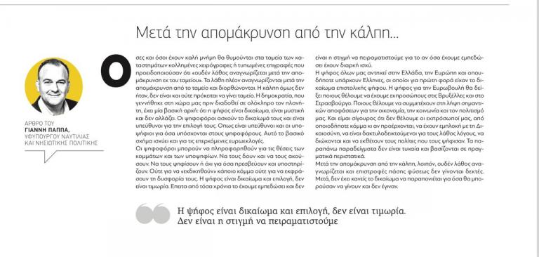 Γιάννης Παππάς: «Μετά την απομάκρυνση από την κάλπη…» - Άρθρο του Υφυπουργού Ναυτιλίας και Νησιωτικής Πολιτικής, στην εφημερίδα Παραπολιτικά