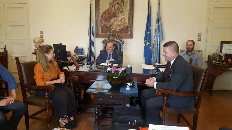 Δελτίο Τύπου-ΘΕΜΑ: Για τον τουρισμό και επενδύσεις σε θέματα υποδομών συζήτησε ο Δήμαρχος με Πολωνούς αξιωματούχους Αντιπροσωπεία Πολωνών εκπροσώπων της Πρεσβείας επισκέφτηκε το μεσημέρι (Πέμπτη) το δήμαρχο Ρόδου Φώτη Χατζηδιάκο και τον ενημέρωσε για την αυξητική τάση Πολωνών επισκεπτών στη Ρόδο το 2017, τις δυνατότητες προώθησης ελληνικών προϊόντων στην Πολωνία και την προοπτική μεγάλων επενδύσεων στο νησί, σε θέματα υποδομών. Ειδικότερα, ο εκπρόσωπος της πρεσβείας της Πολωνίας για την προώθηση του Εμπορίου και των Επενδύσεων κ. Andrjez Sjostek ενημέρωσε το δήμαρχο για τους τρόπους με τους οποίους η ελληνική πρεσβεία ενισχύει τους έλληνες παραγωγούς και εμπόρους ώστε να προωθήσουν τα προϊόντα τους στην πολωνική αγορά και δήλωσε το ενδιαφέρον των Πολωνών και την προτίμηση που δείχνουν στη χώρα μας. Επικεφαλής της αντιπροσωπείας ήταν η επίτιμη πρόξενος της Ρόδου κ. Κατερίνα Ασπράκη και συμμετείχαν ο εκπρόσωπος του Πολωνο-Ελληνικού Εμπορικού και Βιομηχανικού Επιμελητηρίου Janusz Golas καθώς και εκπρόσωποι Πολωνικής εταιρείας επενδύσεων που παρουσίασαν μεγάλη επενδυτική πρόταση, για τη δημιουργία ενός απόλυτα φιλικού για το περιβάλλον εναλλακτικού τρόπου διαχείρισης, των οικιακών απορριμμάτων. Ο κ. Χατζηδιάκος, εξέφρασε την ικανοποίησή του για το γεγονός ότι το 2016 περισσότεροι από 90.000 Πολωνοί επέλεξαν τη Ρόδο για τις διακοπές τους, και δήλωσε ότι στηρίζει τη συνεργασία που έχει ξεκινήσει μεταξύ των δύο πλευρών σε τομείς του εμπορίου. Σε σχέση με τη διαχείριση των αποβλήτων ο κ. Χατζηδιάκος ενημέρωσε την Πολωνική αντιπροσωπεία σχετικά με τις ενέργειες που γίνονται από τον Δήμο για την εύρεση χρηματοδότησης και υλοποίηση του ολοκληρωμένου σχεδιασμού διαχείρισης των αποβλήτων του Δήμου Ρόδου, στο πλαίσιο της κυκλικής οικονομίας και επαναχρησιμοποίησης των υλικών. Τόσο για τη συνέχιση των εμπορικών σχέσεων όσο και στο επίπεδο των επενδύσεων, ο Δήμος Ρόδου θα βρίσκεται σε συνεχή συνεργασία με το Πολωνο-Ελληνικό Επιμελητήριο.