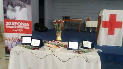 Σε οικογενειακή ατμόσφαιρα και κλίμα έντονης συγκίνησης ,πραγματοποιήθηκε το βράδυ της Κυριακής 28 Μαΐου στο Ροδίνι , γιορτινή εκδήλωση από το περιφερειακό τμήμα του Ε.Ε.Σ Ρόδου ,προκειμένου να τιμήσουν τα 20 χρόνια της επαναδραστηριοποίησης του τμήματος στο νησί! Η πρόεδρος κ.Δ.Δελαπόρτα ,μέλη του Δ.Σ ,εθελοντές /ες ,επίσημοι και αρκετός κόσμος βρέθηκαν ολοι στο Ροδίνι και απόλαυσαν μια όμορφη βραδιά ,με ιστορική αναφορά απο την πρώτη ημέρα που δημιουργήθηκε το τμήμα της Ρόδου εως τις ημέρες μας ,video προβολές ,τιμητικές διακρίσεις ,πλούσιο μπουφέ και ζωντανή μουσική . Υπήρχαν και στελέχη τα οποία ήρθαν απο τα κεντρικά της Αθήνας και τίμησαν με την παρουσία τους την σεμνή αυτή γιορτή . Μια τέτοια αγαπητή παρουσία ηταν η εκπαιδεύτρια της Νοσηλευτικής κ.Μαρία Λούβρου ,η οποία έμεινε στο νησί απο το 1999 εως το 2003 και εκπαίδευσε 2σειρές εθελοντριών . Κατα την διάρκεια της βραδιάς τιμήθηκαν με προαγωγές, εθελόντριες που εχουν μέχρι σήμερα ενεργό ρόλο στον Ε.Ε.Σ . Επίσης τιμητική πλακέτα δώθηκε στον γνωστό σκιτσογράφο κ.Βαγγέλη Παυλίδη για τα σκίτσα του που αφορούν τον Ε.Σ και το ημερολόγιο του τμήματος που σταθερά επιμελείται τα τελευταία χρόνια . Να πούμε επίσης οτι, μια ευχάριστη έκπληξη περίμενε και την πρόεδρο του τμήματος κ.Δελαπόρτα ,οταν στο τέλος της βραδιάς οι εθελόντριες σε μια συμβολική κίνηση εκτίμησης και αναγνώρισης της 20ετούς ουσιαστικής προσφοράς της , της χάρισαν ενα ασημένιο βραχιόλι με σταυρό που είναι και το έμβλημα του Ε.Σ. Ετσι λοιπόν,
