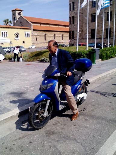 ...και απο βέσπα ξέρει ο Δήμαρχος και ακομπλάριστος είναι...... και καβαλάει τη βέσπα του και ξεχύνεται στους δρόμους της πόλης και του νησιού για να προλάβει αμα ζοριστεί ! Π.Χ