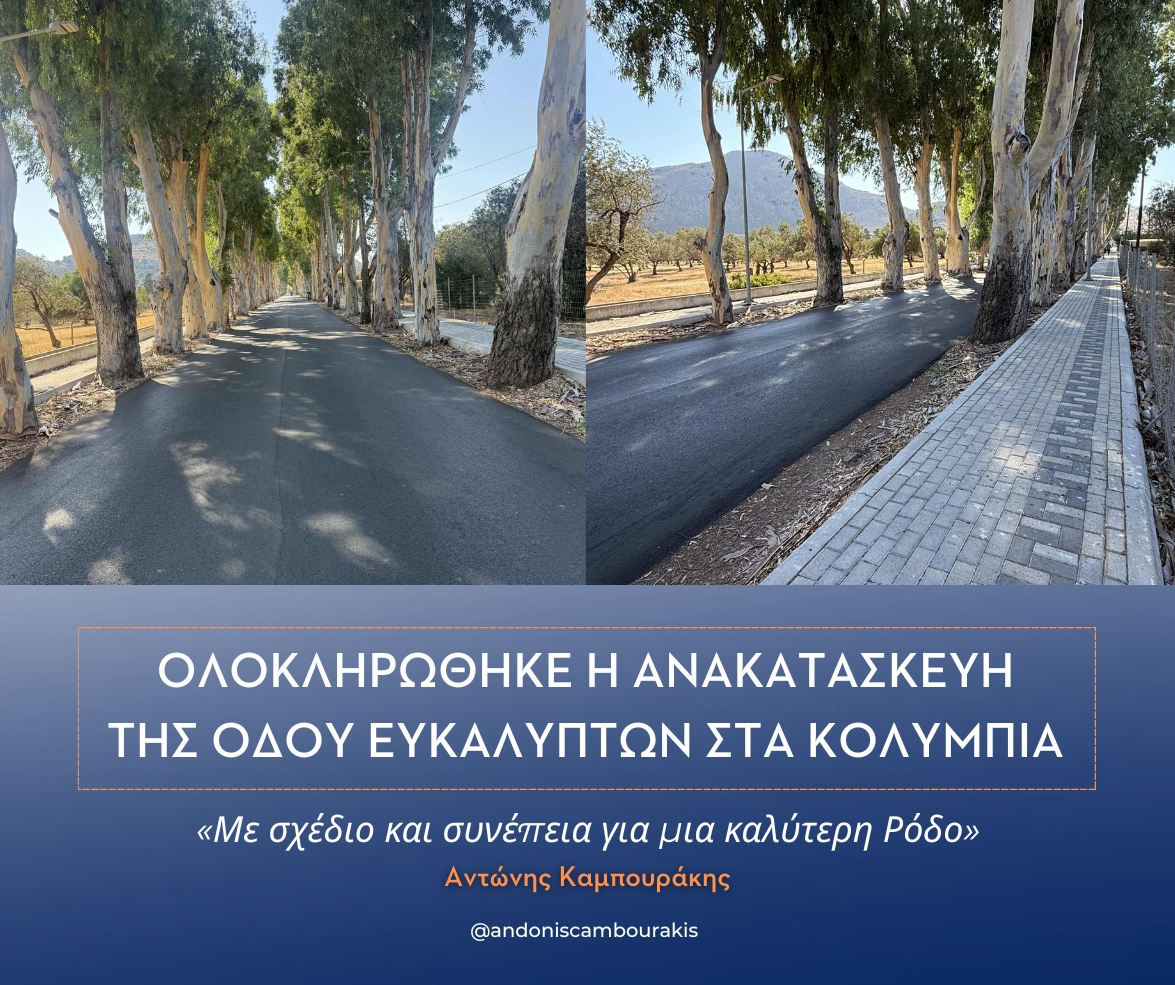 Με χαρά διαπίστωσα την ολοκλήρωση του έργου ανακατασκευής της οδού Ευκαλύπτωνστα Κολύμπια.