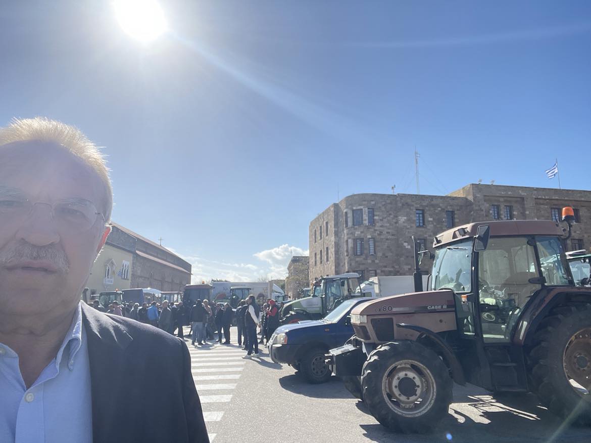 Ο πρώην βουλευτής Δωδεκανήσου Δημήτρης Γάκης και μέλος της Νέας Αριστεράς συναντήθηκε με τους αγρότες της νότιας Ρόδου που έχουν σταθμεύσει εδώ και 5 μέρες με τα τρακτέρ τους μπροστά από το Δημαρχείο Ρόδου.