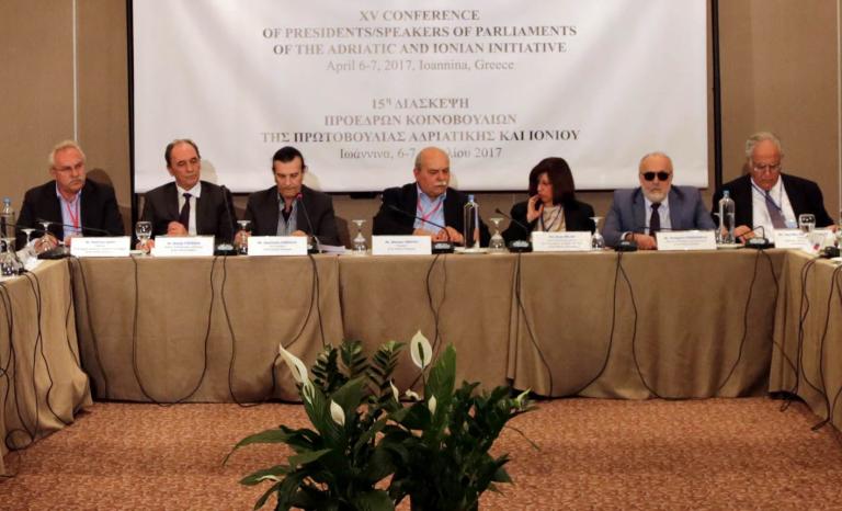 ΔΕΛΤΙΟ ΤΥΠΟΥ-Δημήτρης Γάκης στη Διάσκεψη της Πρωτοβουλίας Αδριατικής-Ιονίου: «Στόχος μας μια περιφερειακή στρατηγική ανάπτυξης που θα ξεκλειδώνει τις δυνατότητες και θα στοχεύει στον πολίτη» ***Για το σημαντικό ρόλο του Κοινοβουλίου στην υλοποίηση του αναπτυξιακού σχεδιασμού των περιφερειών, τη διασυνοριακή συνεργασία και τους τρόπους με τους οποίους οι νησιωτικές περιοχές μπορούν να γίνουν μοχλοί ανάπτυξης για την οικονομία της Ελλάδας, μίλησε ο πρόεδρος της Επιτροπής Περιφερειών της Βουλής Δημήτρης Γάκης στη 15η Διάσκεψη Προέδρων των Κοινοβουλίων της Πρωτοβουλίας Αδριατικής-Ιονίου, που πραγματοποιήθηκε στα Ιωάννινα την Παρασκευή 7 Απριλίου 2017. Ο Δ. Γάκης στην ομιλία του, τόνισε ιδιαίτερα ότι ο τρόπος με τον οποίο θα αντιμετωπίσουν οι χώρες τη διεύρυνση των διασυνοριακών συνεργασιών των περιφερειών, θα καθορίσει το αναπτυξιακό μέλλον των χωρών στις επόμενες δεκαετίες και τάχθηκε υπέρ της ανάδειξης της σημασίας του στρατηγικού σχεδιασμού τόσο στην ιεράρχηση των αναπτυξιακών στόχων όσο και στον τρόπο με τον οποίο λαμβάνονται οι αποφάσεις και παρακολουθείται η υλοποίηση τους. Κάλεσε τους συμμετέχοντες στη Διάσκεψη να συμβάλουν στη μετατροπή της Πρωτοβουλίας Αδριατικής – Ιονίου σε ένα αναβαθμισμένο φόρουμ διαλόγου για την ανάπτυξη της νοτιοανατολικής Μεσογείου και πρότεινε και έγινε αποδεκτό από τη Διάσκεψη, τη διοργάνωση διακοινοβουλευτικών συνεδριάσεων των επιτροπών περιφερειών των κρατών- μελών της πρωτοβουλίας. Με στόχο, τη διασφάλιση της βιώσιμης ανάπτυξης των περιφερειακών οικονομιών, την αύξηση της αποτελεσματικότητας των αναπτυξιακών δυνατοτήτων και της απασχόλησης, την ενθάρρυνση των επενδύσεων και την κοινωνική συνοχή. Στην εισήγησή του για την κοινοβουλευτική διάσταση του περιφερειακού δικτύου, που συνδέει περιφέρειες οκτώ ευρωπαϊκών κρατών, ο Δημήτρης Γάκης αναφέρθηκε στους τρόπους με τους οποίους οι Περιφέρειες στηρίζονται θεσμικά, για να μπορέσουν να σταθούν στιβαρά και ανταγωνιστικά στο διεθνές περιβάλλον, να κρατήσουν τους νέους στον τόπο τους, να προβάλλουν τα ανταγωνιστικά τους πλεονεκτήματα, τα διαφοροποιημένα περιφερειακά και τοπικά προϊόντα που παράγουν και τις υπηρεσίες που παρέχουν. Στο πλαίσιο αυτό, ο πρόεδρος της Επιτροπής Περιφερειών παρουσίασε σαν παράδειγμα, τις προϋποθέσεις για την επιτυχή υλοποίηση ενός «χάρτη νησιωτικής ανάπτυξης», που θα αξιοποιεί αποτελεσματικά τις υποδομές και θα εξασφαλίζει την ισόρροπη και αειφορική σχέση της τουριστικής δραστηριότητας με το φυσικό περιβάλλον. Με στοχευμένα αναπτυξιακά και διαρθρωτικά μέτρα. Με δράσεις εξωστρέφειας και με τη χρήση των κατάλληλων χρηματοδοτικών εργαλείων, όπως είναι τα ειδικά αναπτυξιακά και επενδυτικά ταμεία και τέλος, με την εκπόνηση ενός ειδικού σχεδίου τουριστικής ανάπτυξης για τα μικρά νησιά. Το ΓΡΑΦΕΙΟ ΤΥΠΟΥ -.-