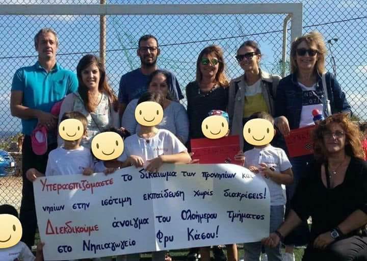 ΘΕΜΑ: «Διαμαρτυρία Γονέων Ολοήμερου Νηπιαγωγείου Φρυ – Αρβανιτοχωρίου» -Αν και διανύουμε τον δεύτερο μήνα μαθημάτων σε όλα τα σχολεία της Ελλάδας, στην ακριτική, απομονωμένη και δυσπρόσιτη Κάσο το Ολοήμερο Νηπιαγωγείο Φρυ – Αρβανιτοχωρίου ακόμα περιμένει να λειτουργήσει το ολοήμερο τμήμα του. Τι κι αν έχουμε απευθύνει εκκλήσεις προς πάσα κατεύθυνση, όχι μόνο δεν έχει ικανοποιηθεί το αίτημά μας αυτό, αντιθέτως εισπράττουμε και μια ανεξήγητη άρνηση. Αν και πληρούμε όλες τις νόμιμες προϋποθέσεις για τη λειτουργία ολοήμερου τμήματος, κάτι τέτοιο μέχρι σήμερα δεν έχει επιτευχθεί, γεγονός το οποίο μόνο προβλήματα δημιουργεί στην καθημερινότητα γονέων και παιδιών, τα οποία αρκετές φορές αναγκάζονται υπομονετικά να περιμένουν στον δρόμο μέχρι να σχολάσουν οι γονείς τους. Εμείς, οι γονείς του ακριτικού και ιστορικού νησιού της Κάσου, δίνοντας καθημερινή μάχη για vα κρατήσουμε τα φώτα των σπιτιών μας ανοιχτά και να μην ερημώσει ο τόπος, απαιτούμε και όχιεπαιτούμε , να δοθεί άμεσα έγκριση από τους αρμόδιους φορείς για τη λειτουργία του προαναφερόμενου ολοήμερου τμήματος του νηπιαγωγείου μας. Είμαστε ισότιμα φορολογούμενοι πολίτες της Ελλάδας χωρίς καμία ιδιαίτερη ευνοϊκή μεταχείριση κι όχι δεύτερης κατηγορίας. Ζητάμε τα αυτονόητα, τις ίσες ευκαιρίες μάθησης των παιδιών μας βάση του συντάγματος, με αυτές των παιδιών ολόκληρου του ελλαδικού χώρου. Είναι αδιανόητο στον 21ο αιώνα στα νησιά και μάλιστα τα ακριτικά, να μην είναι πρώτη προτεραιότητα της Πολιτείας, αν και υπάρχει δέσμευσή της επ’ αυτού, η συγκράτηση των πληθυσμών τη στιγμή μάλιστα που τα σύνορά μας βρίσκονται υπό αμφισβήτηση και που η Κάσος συγκαταλέγεται στη μεγάλη χάρτα της Τουρκίας ως η δική τους ‘’ΑντάΤζομπάν’’. Τα συμπεράσματα δικά σας… Οι γονείς: Βαρδαούλη Ευαγγελία Γκιόλβας Απόστολος Δημητρούλης Δημήτρης Καμπούρη Μαγκαφούλα Κρητικός Νικήτας Μελά Χριστίνα Μηνάς Ιούλιος Παπαγεωργίου Βασίλειος Παπαδοπούλου Αικατερίνη Παπαμυλωνάδη Μαρία Στιβακτάκη Ουρανία Φωτιάδης Φώτιος Ψαρρού Διασώζουσα