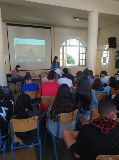 Ακολούθησαν τρεις ομιλίες προς τους μαθητές/τριες της Δευτεροβάθμιας Εκπαίδευσης. Πιο συγκεκριμένα στις 14 Απριλίου 2022 πραγματοποιήθηκε ομιλία διαδικτυακά προς τους μαθητές/τριες του Λυκείου Αφάντου, στις 5 Μάιου και 12 Μαΐου προς τους μαθητές/τριες του 6ου Γυμνασίου Ρόδου δια ζώσης. Ο τίτλος των ομιλιών ήταν: ’’Ενδοοικογενειακή βία Ευαισθητοποίηση των μαθητών στις προειδοποιητικές ενδείξεις μίας βίαιης σχέσης’’, κατά τις οποίες οι μαθητές/τριες ενημερώθηκαν και ευαισθητοποιήθηκαν για το φαινόμενο της ενδοοικογενειακής βίας. Αρχικά, έγινε αναφορά στις παρεχόμενες υπηρεσίες του Συμβουλευτικού Κέντρου Γυναικών, στον ορισμό της βίας, τα επιδημιολογικά στοιχεία του φαινομένου, τις μορφές της βίας και το νομικό πλαίσιο. Ακολούθησε η ανάλυση του κύκλου της βίας, του προφίλ του θύματος και της ψυχολογίας του, του προφίλ του θύτη και του αντίκτυπου που έχει η ενδοοικογενειακή βία στη ψυχολογία των παιδιών. Παράλληλα, οι μαθητές/τριες εκπαιδεύτηκαν στην αναγνώριση των ενδείξεων μιας βίαιης σχέσης, τους τρόπους παρέμβασης από τη θέση ενός παρατηρητή, καθώς και τους τρόπους αντιμετώπισης από τη θέση θύματος και θύτη. Κατά τη διάρκεια των δράσεων προβλήθηκε οπτικοακουστικό υλικό και έλαβαν χώρα βιωματικές ασκήσεις που στόχο είχαν την αναγνώριση χαρακτηριστικών των υγειών και μη υγειών σχέσεων.
