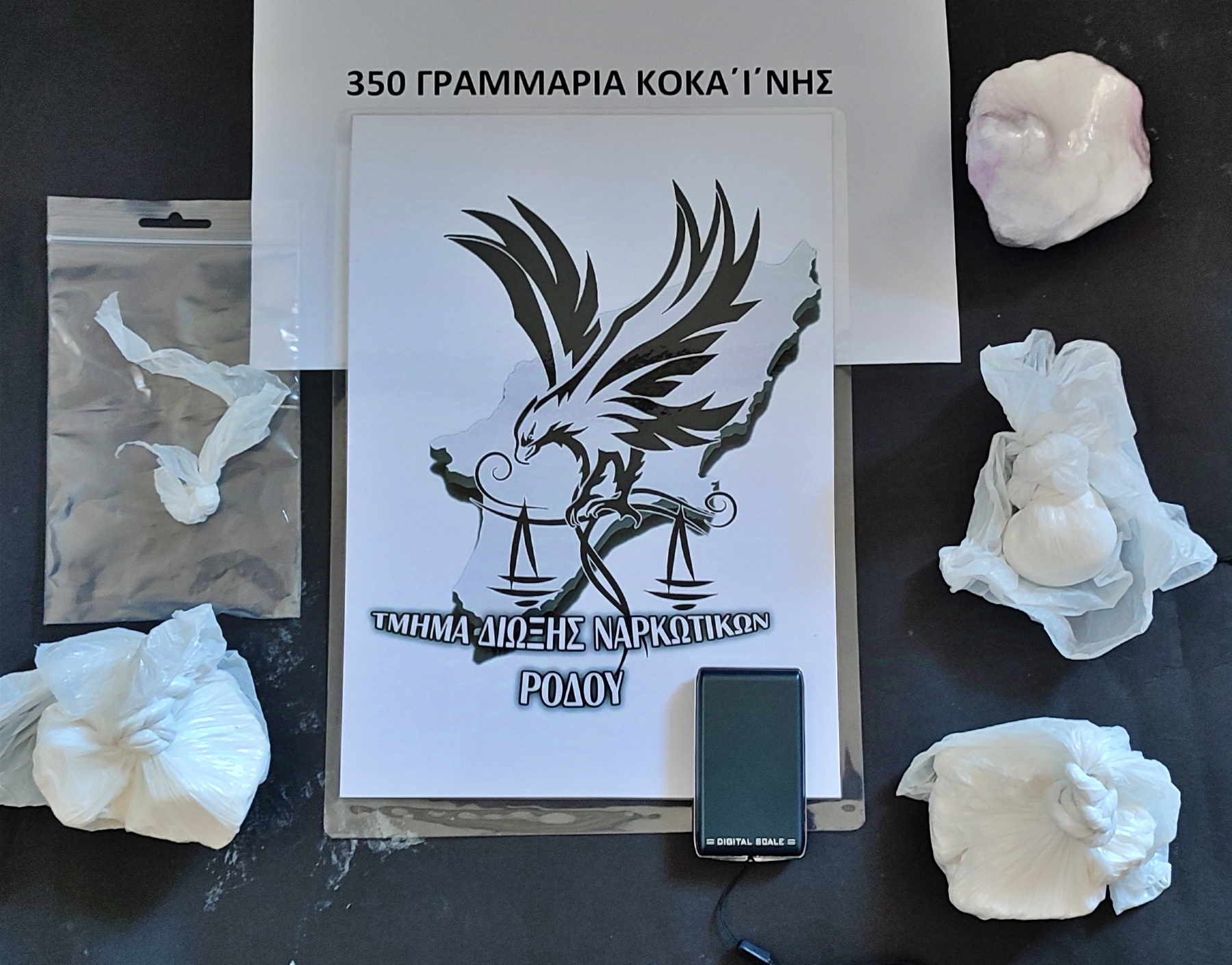 • 350,2 γραμμάρια κοκαΐνης, τοποθετημένη σε πέντε συσκευασίες