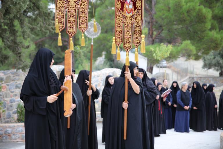Το πρωί του Σαββάτου μετά την Ακολουθία του Όρθρου στο παλαιό Καθολικό της Κοιμήσεως της Υπεραγίας Θεοτόκου έλαβε χώρα η τελετή των Εγκαινίων και ακολούθησε η Θεία Λειτουργία προεξάρχοντος του Σεβασμιωτάτου Μητροπολίτου Ρόδου κ. Κυρίλλου, ο οποίος στην ομιλία του τόνισε τη σημασία του γεγονότος, αναφέρθηκε στο ιστορικό της ανέγερσης και εξέφρασε τον έπαινο της Εκκλησίας και τις προσωπικές του ευχαριστίες προς την Ηγουμένη οσιωτάτη Μοναχή Μαριάμ και την Αδελφότητα για το συντελεσθέν έργο της ανέργεσης του νέου καλαίσθητου και μεγαλοπρεπούς ιερού Ναού. Ακολούθησε η ομιλία της οσιωτάτης Ηγουμένης με τις δέουσες ευχαριστίες προς όλους τους συνεργήσαντες στην αποπεράτωση του.