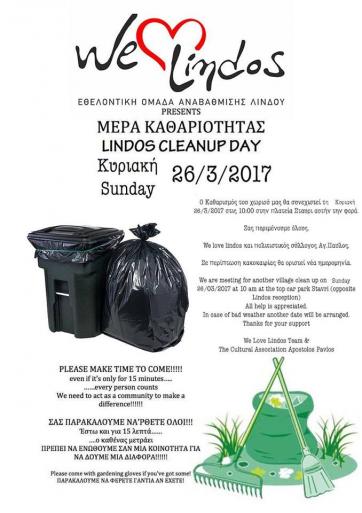 Ο Καθαρισμός του χωριού μας θα συνεχιστεί την Κυριακή 26/3/2017 στις 10:00 στην πλατεία Σταυρι αυτήν την φορά.