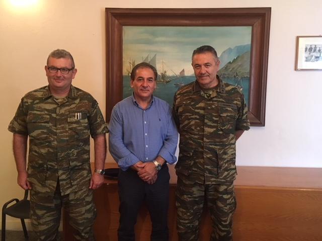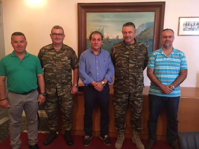 ΔΕΛΤΙΟ ΤΥΠΟΥ-Εθιμοτυπική επίσκεψη πραγματοποιήθηκε σήμερα από τον Ταξίαρχο της 80 ΑΔΤΕ κο Λάμπρο Ναζίφη και τον Συνταγματάρχη του 542 Συντάγματος της Καλύμνου κο Κωσταντίνο Δαλάκη, στον Δήμαρχο Καλυμνίων κο Ιωάννη Γαλουζή. -Κατά τη διάρκεια της συνάντησης, που έγινε σε ιδιαίτερα θερμό κλίμα, συζητήθηκαν θέματα συνεργασίας του Δήμου της Καλύμνου με τη διοίκηση του Ελληνικού Στρατού, τα οποία βρίσκονται ήδη σε εξέλιξη . -Από το Γραφείο Δημάρχου