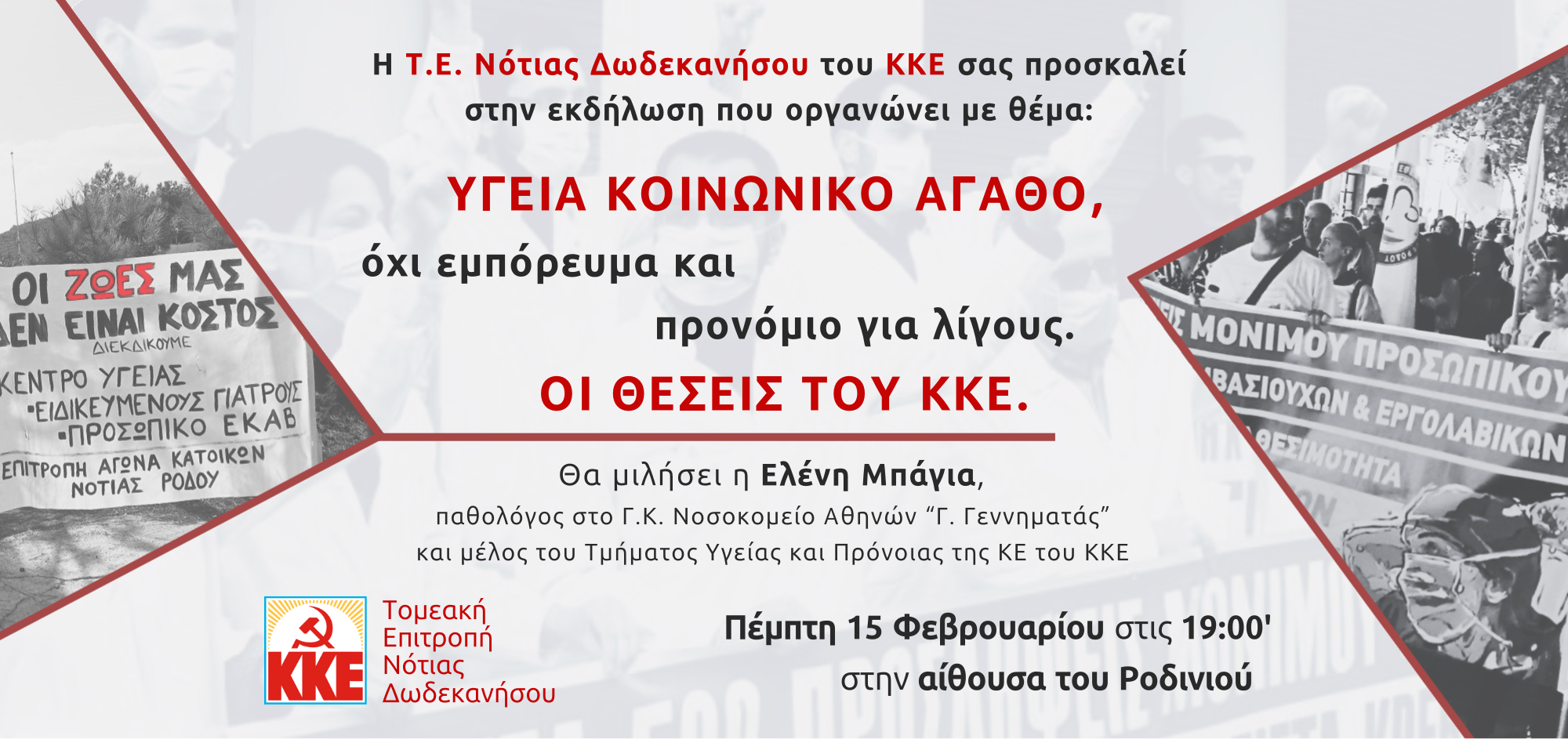 Μπροστά σ’ αυτές τις εξελίξεις η ΤομεακήΕπιτροπήΝότιας Δωδεκανήσου του ΚΚΕθαπραγματοποιήσειεκδήλωσητην Πέμπτη 15 Φεβρουαρίου στις 19:00 στην Αίθουσα «ΡΟΔΙΝΙ» μεθέμα: