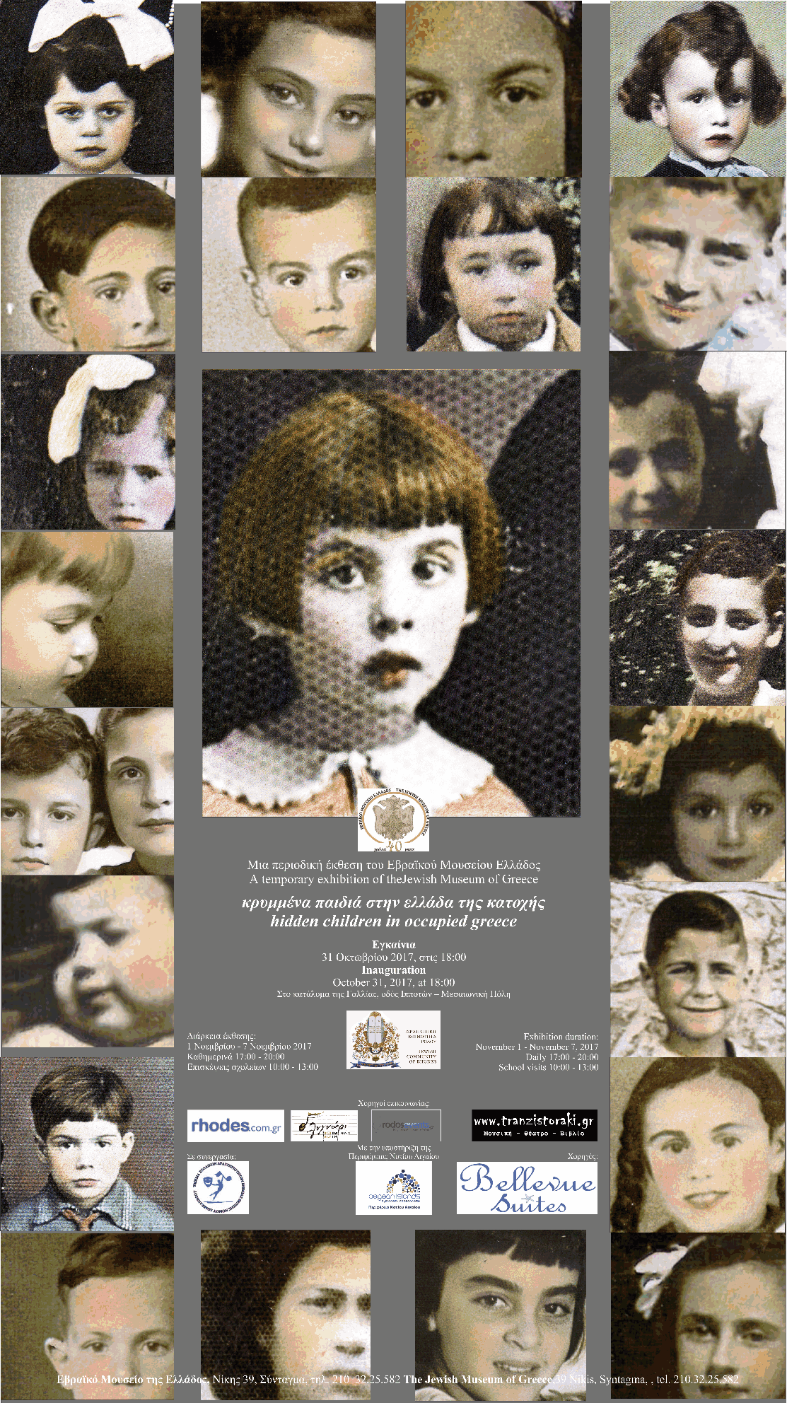 Η έκθεση διερευνά το θέμα των κρυμμένων εβραιόπαιδων της Κατοχής, μέσα από ιστορίες παιδιών από όλο τον ελλαδικό χώρο, οι οποίες καλύπτουν ένα ευρύ φάσμα από τις εμπειρίες, εξελίξεις και καταλήξεις που βίωσαν αυτά τα άτυχα « παιδιά του πολέμου».