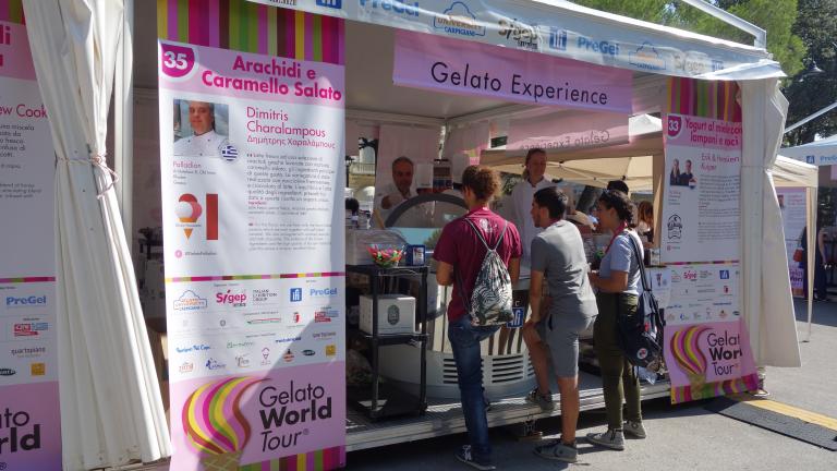 ΕΛΛΗΝΙΚΗ ΣΥΜΜΕΤΟΧΗ ΣΤΟΝ ΜΕΓΑΛΟ ΤΕΛΙΚΟ ΠΑΓΩΤΟΥ-GELATO WORLD TOUR Ολοκληρώθηκε στο Ρίμινι της Ιταλίας ο Μεγάλος Τελικός του Παγκόσμιου Διαγωνισμού Παγωτού Gelato World Tour 8-10 Σεπτεμβρίου 2017. Το εισιτήριο για τη συμμετοχή στον τελικό αυτό κατάφεραν να έχουν οι 36 καλύτερες γεύσεις από 20 μόνο χώρες, μεταξύ των οποίων και η Ελλάδα, χάρη στη γεύση και την ποιότητα του Εργαστήριου Παγωτού «Παλλάδιον» που βρίσκεται στην Παλιά Πόλη της Ρόδου. Η διαδικασία του διαγωνισμού κράτησε 3 ολόκληρα χρόνια. Στη διάρκεια των 3 χρόνων, διαγωνίστηκαν 2000 gelato chefs από όλες τις χώρες του κόσμου. Αρχικά έγινε διαγωνισμός σε κάθε χώρα ξεχωριστά και στη συνέχεια σε κάθε ήπειρο με τη συμμετοχή των νικητών από κάθε χώρα. Το ΠΑΛΛΑΔΙΟΝ, με το Δημήτρη Χαραλάμπους, διαγωνίστηκε αρχικά στην Ελλάδα όπου πήρε την πρώτη θέση και στη συνέχεια στην Ιταλία (Μπολόνια) όπου κατάφερε να πάρει την 3η θέση πανευρωπαϊκά, και μαζί το εισιτήριο για τον μεγάλο τελικό. Στον μεγάλο τελικό GELATO WORLD TOUR – GRAN FINALE, εκτός από την κριτική επιτροπή και τους δημοσιογράφους, ψήφισε και ο κόσμος που επισκέφθηκε το Πάρκο Φεντερίκο Φελίνι του Ρίμινι για να δοκιμάσει τα παγωτά και οι δημοσιογράφοι. Πρόκειται για μια τεράστια διοργάνωση, στην οποία η συμμετοχή και μόνο αποτελεί ιδιαίτερη τιμή και μοναδική εμπειρία. Το «Παλλάδιον» φορώντας τη φανέλα της εθνικής έδωσε το καλύτερο που μπορεί: ένα εκπληκτικό παγωτό με αγνά και φρέσκα υλικά από τον τόπο μας. Στο σημείο αυτό θα πρέπει να γίνει ιδιαίτερη αναφορά στο ΑΠΛΩΣ ΦΡΕΣΚΟ, την τοπική βιομηχανία γάλακτος της Ρόδου, χωρίς τη συνδρομή του οποίου θα ήταν πραγματικά αδύνατο να μεταφερθεί το γάλα και τα υπόλοιπα υλικά του παγωτού στο Ρίμινι. To ΠΑΛΛΑΔΙΟΝ συμμετείχε με τη γεύση «Φυστίκι Αράπικο με Αλμυρή Καραμέλα» (Salted Caramel Peanuts), με γάλα από τη Ρόδο (ΑΠΛΩΣ ΦΡΕΣΚΟ) και φυστίκι από την Καλαμάτα. Το περίπτερο που παραχωρήθηκε για την Ελληνική συμμετοχή από τη διοργάνωση για την έκθεση του παγωτού, έγινε πόλος έλξης χιλιάδων Ιταλών που επισκέφθηκαν το Πάρκο Φεντερίκο Φελίνι τις 3 ημέρες που κράτησε η εκδήλωση και δεκάδων δημοσιογράφων από όλες τις χώρες του κόσμου που κάλυψαν το γεγονός. H προβολή ήταν τεράστια όχι μόνο για το ΠΑΛΛΑΔΙΟΝ αλλά και για το νησί της Ρόδου και για την Ελλάδα. Η ανταπόκριση και η αγάπη του κόσμου ήταν συγκινητική. Παγκόσμιος Πρωταθλητής του Παγωτού σε αυτόν τον τελικό ανακηρύχθηκε η Ιταλία, ενώ η συνολική κατάταξη για τη θέση που πήρε η Ελληνική συμμετοχή αναμένεται. Μόλις υπάρξει ενημέρωση θα δημοσιευθεί στη σελίδα https://www.facebook.com/GelatoPalladion . Για την ώρα, δεν είναι λίγο να γνωρίζει όλος ο κόσμος με σιγουριά, ότι ένα από τα τρία καλύτερα παγωτά της Ευρώπης θα το βρει σε ένα μικρό εργαστήριο παγωτού στην Ελλάδα και μάλιστα στην Παλιά Πόλη της Ρόδου!!!