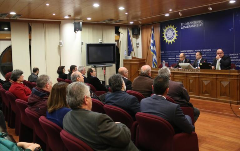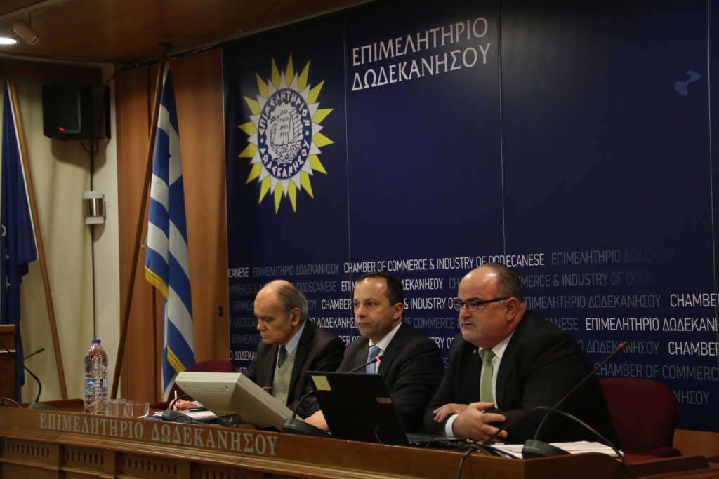 Δελτίο Τύπου-Ρόδος, 14 Μαρτίου 2017 -Πραγματοποιήθηκε εχθές, Δευτέρα 13 Μαρτίου, η εκδήλωση του Επιμελητηρίου Δωδεκανήσου με θέμα «Επιχειρείν στην Ελλάδα του 2017 (;)». Στο ερώτημα κλήθηκαν να απαντήσουν, να σχολιάσουν και να συζητήσουν με τους παρευρισκόμενους οι δύο προσκεκλημένοι ομιλητές, ο Πρόεδρος της ΓΣΕΒΕΕ κος Γεώργιος Καββαθάς και ο τ.Γενικός Γραμματέας του Υπουργείου Κοινωνικής Ασφάλισης-Εργατολόγος κος Γεώργιος Ρωμανιάς.