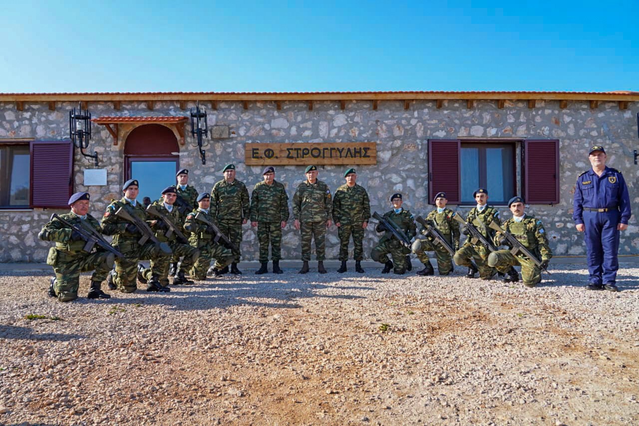 ● Στην Στρογγύλη, με το προσωπικό του Επιτηρητικού Φυλακίου της νήσου.
