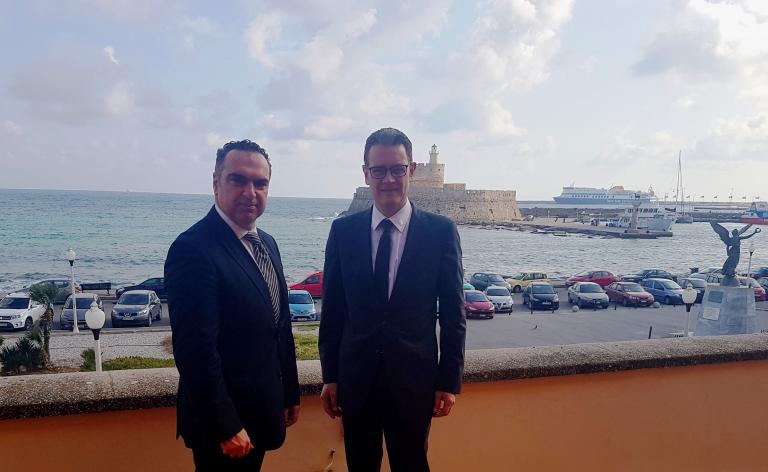 ΔΕΛΤΙΟ ΤΥΠΟΥ-Επενδυτικές ευκαιρίες και σημαντικές προοπτικές ανάπτυξης υπάρχουν και στις δυο πλευρές του Αιγαίου και ανάλογο είναι το ενδιαφέρον Ελλάδας και Τουρκίας για συνεργασία στον τουρισμό, στις μεταφορές, στις συγκοινωνίες και γενικότερα όπου υπάρχει δυνατότητα αξιοποίησης και αμοιβαία επωφελών συναλλαγών. Αυτό επιβεβαιώθηκε στην προγραμματισμένη συνάντηση εργασίας του Γενικού Προξένου της Τουρκίας κ. Baris Kalkavan και του Αντιπεριφερειάρχη Ανάπτυξης της Περιφέρειας Νοτίου Αιγαίου κ. Γιάννη Φλεβάρη, στο ιστορικό κτίριο της Περιφέρειας στη Ρόδο. Ο κ. Φλεβάρης μετέφερε στον κ. Πρόξενο τον χαιρετισμό του Περιφερειάρχη Νοτίου Αιγαίου κ. Γιώργου Χατζημάρκου και ανέφερε ότι κάθε πρωτοβουλία για ανάπτυξη και συνεργασία αντιμετωπίζεται θετικά και συμβάλλει στο αμοιβαίο συμφέρον και στις δυο όχθες της θάλασσάς μας και όσων επενδύουν σε αυτές. Ακολούθησε συζήτηση με ατζέντα που περιελάμβανε θέματα που αφορούν κυρίως τις επενδύσεις στον τομέα της ανάπτυξης και σε θέματα αρμοδιότητας του Αντιπεριφερειάρχη για ολόκληρη την Περιφέρεια Νοτίου Αιγαίου, καθώς και την διαδικασία αδειοδοτήσεων παραγωγικών μονάδων και επιχειρήσεων. Ο κ. Φλεβάρης ανέπτυξε το ισχύον καθεστώς που προβλέπει τη δυνατότητα πραγματοποίησης αναπτυξιακών επενδύσεων ενώ ο κ. Kalkavan εκφράζοντας την επιθυμία επιχειρήσεων και εταιρειών της χώρας του, να διερευνηθούν οι προοπτικές επενδύσεων, αναφέρθηκε στις δυνατότητες που υπάρχουν, καθώς και στην αμοιβαία ωφέλεια που θα προκύψει εάν ακολουθηθεί ευρύτερη αναπτυξιακή και οικονομική συνεργασία. Ο κ. Πρόξενος ανέφερε ότι γνωρίζει τις ενέργειες και τις δράσεις και τις πρωτοβουλίες της Περιφερειακής Αρχής του Νοτίου Αιγαίου για μια σειρά θεμάτων όπου ανάλογο ενδιαφέρον επιδεικνύει και η Τουρκία καθώς πέραν του επενδυτικού τομέα υπάρχει έντονη τουριστική και εμπορική προοπτική συνεργασίας. Ανάμεσα σε αυτά είναι το σχέδιο των υδατοδρομίων και κατ’ επέκταση η δυνατότητα εκτέλεσης πτητικού έργου με υδροπλάνα, η κρουαζιέρα, η προώθηση των πωλήσεων και η δυνατότητα εξαγωγών τοπικών προϊόντων του Νοτίου Αιγαίου στην Τουρκική αγορά, καθώς και η σκέψη διοργάνωσης στη Σμύρνη, εβδομάδας παρουσίασης Ελληνικών προϊόντων και επιχειρήσεων που εδρεύουν στο Νότιο Αιγαίο. Ο κ. Φλεβάρης ευχαρίστησε τον Πρόξενο κ. Kalkavan για την παρουσία του στην Περιφέρεια Νοτίου Αιγαίου, για τις προτάσεις του και για το ενδιαφέρον επενδυτών, επιχειρήσεων και ιδιωτών σε θέματα ανάπτυξης και επέκτασης των οικονομικών συναλλαγών. Ο δρόμος αυτός μπορεί να οδηγήσει τις δυο οικονομίες και πολύ περισσότερο τις δυο χώρες και τους δυο λαούς πιο κοντά για να γίνει το Αιγαίο θάλασσα και γέφυρα ειρήνης, ανάπτυξης και συνεργασίας.