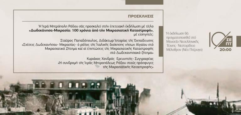 Επετειακή εκδήλωση:"Δωδεκάνησα-Μικρά Ασία"- Εκατό χρόνια από τη Μικρασιατική καταστροφή