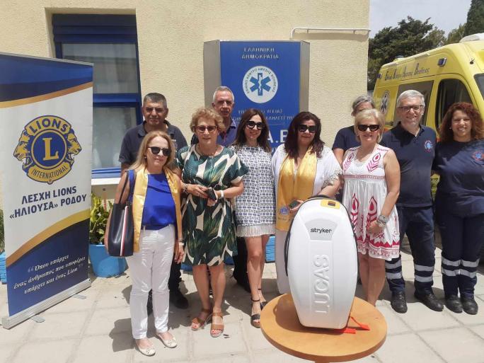 Την Παρασκευή 14 Ιουνίου 2024, η λέσχη Lions Ηλιούσα δια της προέδρου κ. Μπαφίτη Μαρίας και παρουσία μελών του Διοικητικού συμβουλίου της , παρέδωσε στο ΕΚΑΒ Ρόδου την Συσκευή Αυτόματων Θωρακικών Συμπιέσεων (Καρδιοαναπνευστικής Ανάνηψης) LUCAS CPR 3.