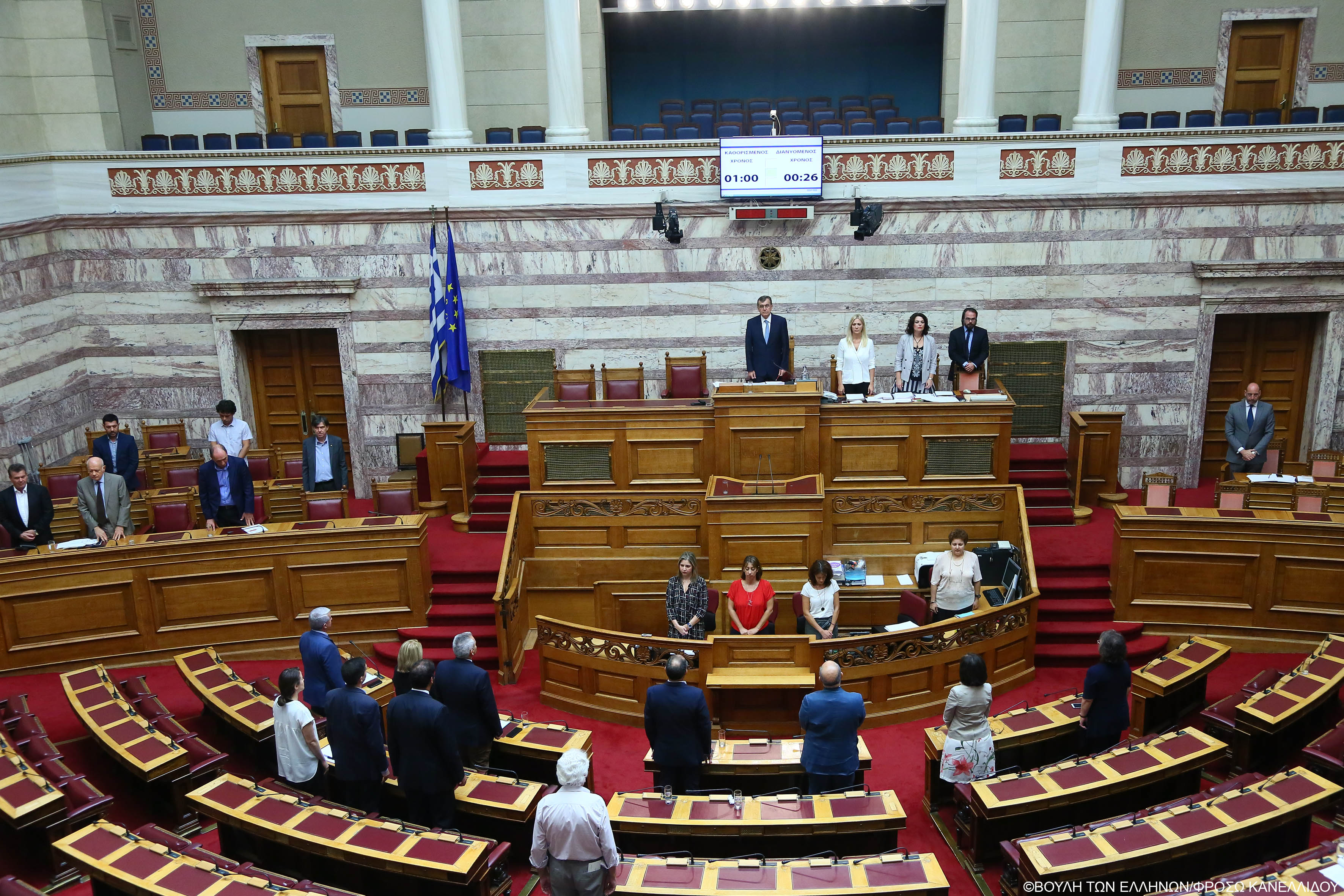 Στο σημείο αυτό τηρήθηκε στην Αίθουσα της Ολομέλειας της Βουλής, ενός λεπτού σιγή.