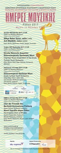 Το Φεστιβάλ «ΗΜΕΡΕΣ ΜΟΥΣΙΚΗΣ-ΣΕΠΤΕΜΒΡΙΟΣ ΣΤΗ ΡΟΔΟ 2016» πιστό στο ραντεβού του για 17η χρονιά, ανοίγει τις πύλες του στο Παλάτι του Μεγάλου Μαγίστρου, για τέσσερις ξεχωριστές βραδιές κλασικής μουσικής με δωρεάν είσοδο για το κοινό. Στις 2 και 3 Σεπτεμβρίου η Ελληνοτουρκική Ορχήστρα Νέων θα παρουσιάσει δύο διαφορετικά προγράμματα, με το πρώτο να εκκινεί από τον Ρομαντισμό και να κορυφώνεται με την εμβληματική 5η συμφωνία του Μπετόβεν, και το δεύτερο να αποτελεί ένα χορταστικό αφιέρωμα στη μουσική δωματίου. Ο μουσικός αυτός θεσμός, σε οκτώ χρόνια παρουσίας, έχει εντυπωσιάσει με τις ερμηνείες του και τη γέφυρα φιλίας που έχει δημιουργήσει ανάμεσα στους δύο λαούς. Μετά την περσινή εξαιρετική της παρουσία στο νησί, επιστρέφει πια ως ορχήστρα inresidence του Φεστιβάλ, αποτελώντας ένα ατού στη διεκδίκηση της Ρόδου για την Πολιτιστική Πρωτεύουσα της Ευρώπης 2021.