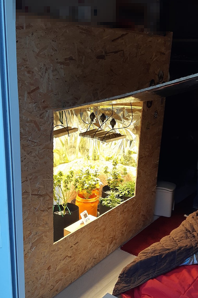 Συγκεκριμένα ο δράστης είχε εγκαταστήσει μέσα σε δωμάτιο του σπιτιού του αυτοσχέδια κατασκευή και καλλιεργούσε επιμελώς κάνναβη, έχοντας εξασφαλίσει κατάλληλες περιβαλλοντικές συνθήκες (αφύγρανσης - φωτισμού - θερμότητας - εξαερισμού) με χρήση τεχνικών μέσων.