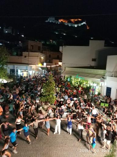 Η Λέρικη βραδιά συνεχίστηκε με πολύ κέφι και χορό ενώ στους καλεσμένους προσφέρθηκε κρασί και εδέσματα από τον Δήμο Λέρου.