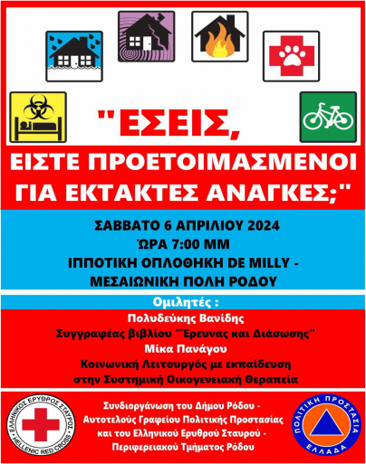 Ο Δήμος Ρόδου σε συνεργασία με τον Ελληνικό Ερυθρό Σταυρό διοργανώνουν ενημερωτική εκπαιδευτική ημερίδα με θέμα: