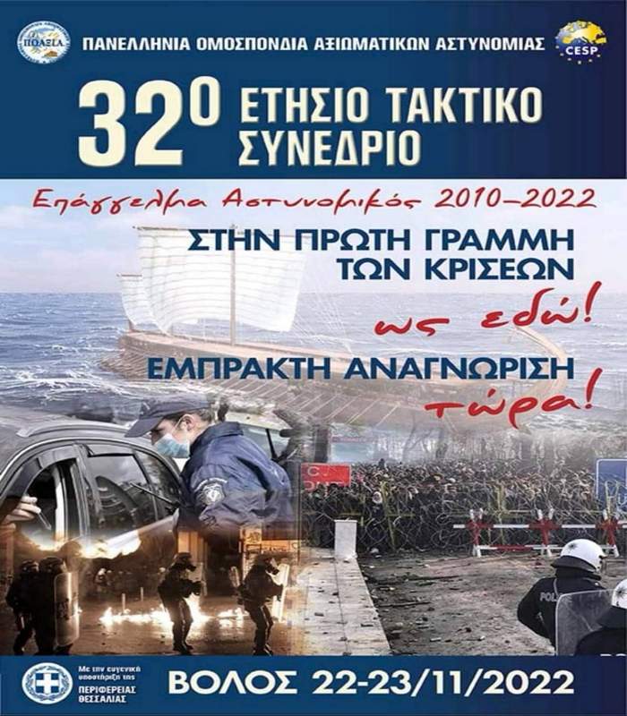 Το διήμερο 22 και 23 Νοεμβρίου 2022 στο Βόλο πραγματοποιήθηκε το 32ο ετήσιο τακτικό συνέδριο της Πανελλήνιας Ομοσπονδίας Αξιωματικών Ελληνικής Αστυνομίας.