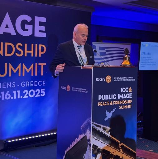 Θέμα: Η Αναβίωση του Κολοσσού της Ρόδου ως Παγκοσμίου Συμβόλου Ειρήνης με εμπνευστή τον Ροταριανό Γιώργο Μπαρμπούτη παρουσιάσθηκε στο συνέδριο για την Ειρήνη και τη Φιλία που διοργάνωσε η 2475 Περιφέρεια Rotary στην Αθήνα.